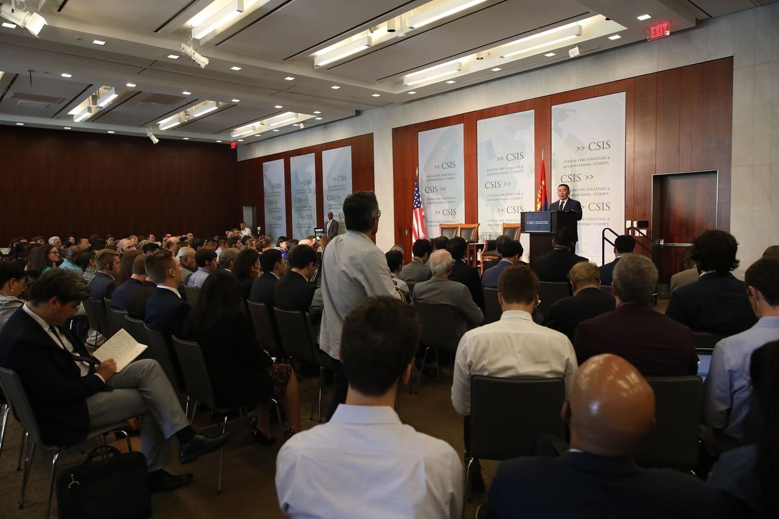 Монгол Улсын Ерөнхийлөгчийг Стратеги, олон улсын судалгааны төвийн Ерөнхийлөгч Жон Хамри угтаж, хоёр улсын харилцааны асуудлаар дэлгэрэнгүй мэдээлэл өгөх гэж байгаад талархал илэрхийлэв. Мөн Ерөнхийлөгчийн хэлэх үг бүр нь чухал тул энэ удаагийн ярилцлагаас хоёр улсын харилцааны ирээдүйн чиг хандлага болоод АНУ дахь айлчлалын талаар тодорхой ойлголттой болно гэсэн өндөр хүлээлттэй байгаа гэсэн юм.