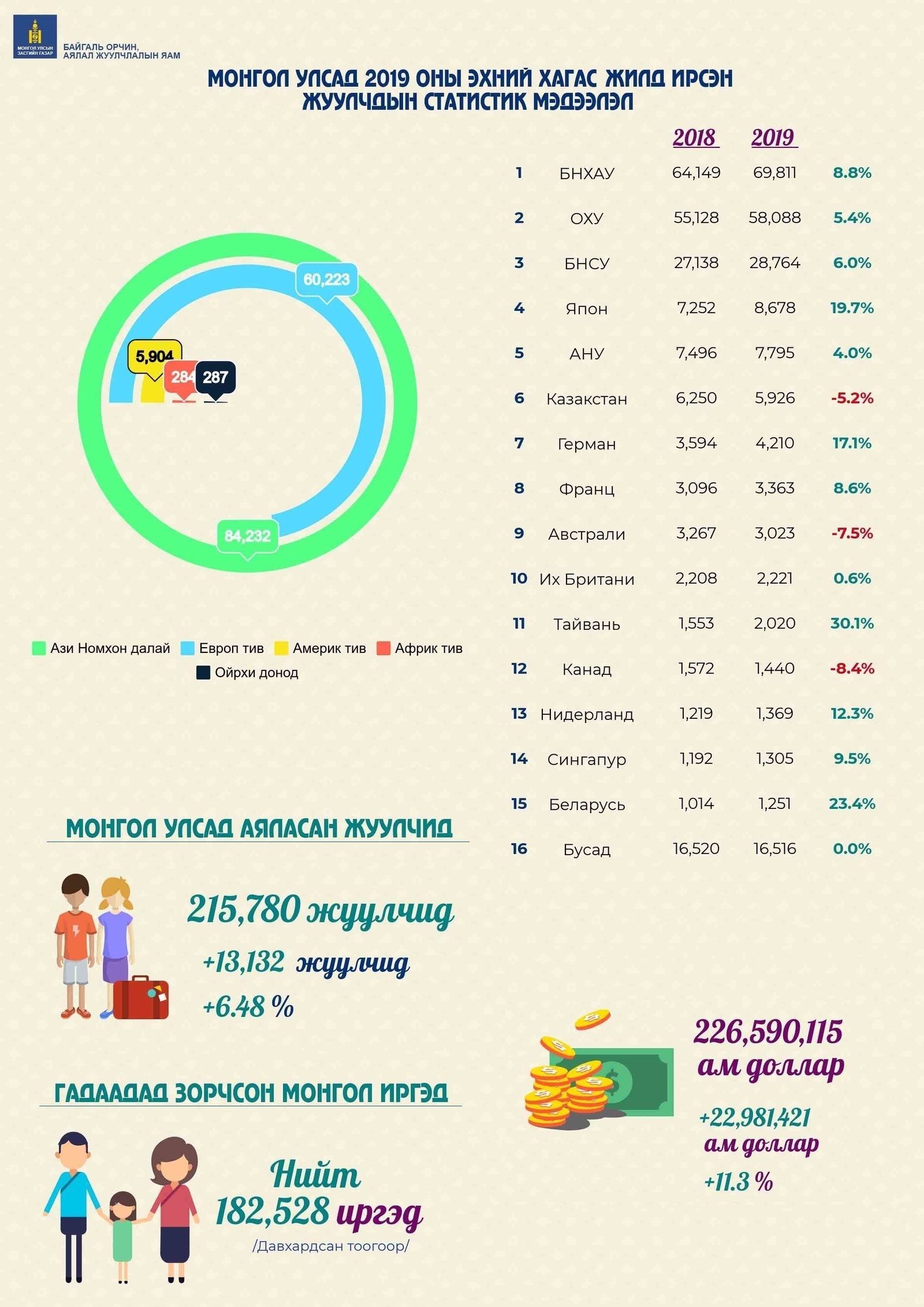 Давхардсан тоогоор 182,528 монгол иргэн энэ оны эхний хагас жилд гадаадад зорчжээ.
