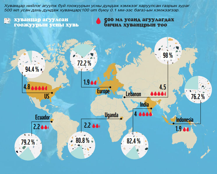 Дэлхийн байгаль хамгаалах сангийн захиалгаар Австралийн Ньюкэстлийн их сургуулийн хийсэн уг судалгаа дэлхий дээрх хүмүүс долоо хоног бүр 5 гр орчим бичил хуванцар идэж буйг тогтоожээ. Өөрөөр хэлбэл, хүн бүр 250 гр буюу нэг жижиг шилний хэмжээтэй хуванцрыг жил тутам идэж байна гэсэн үг.