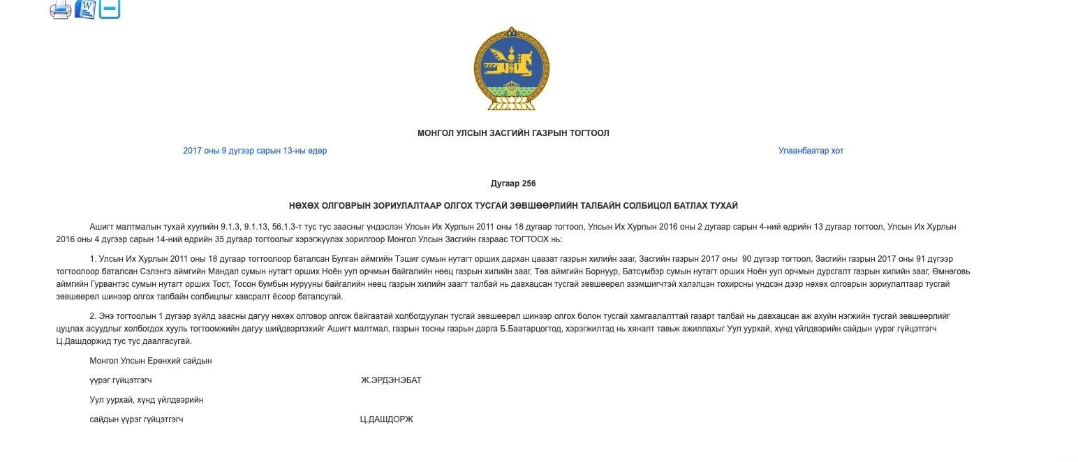 БАРИМТ 1. Засгийн газрын 256-р тогтоол