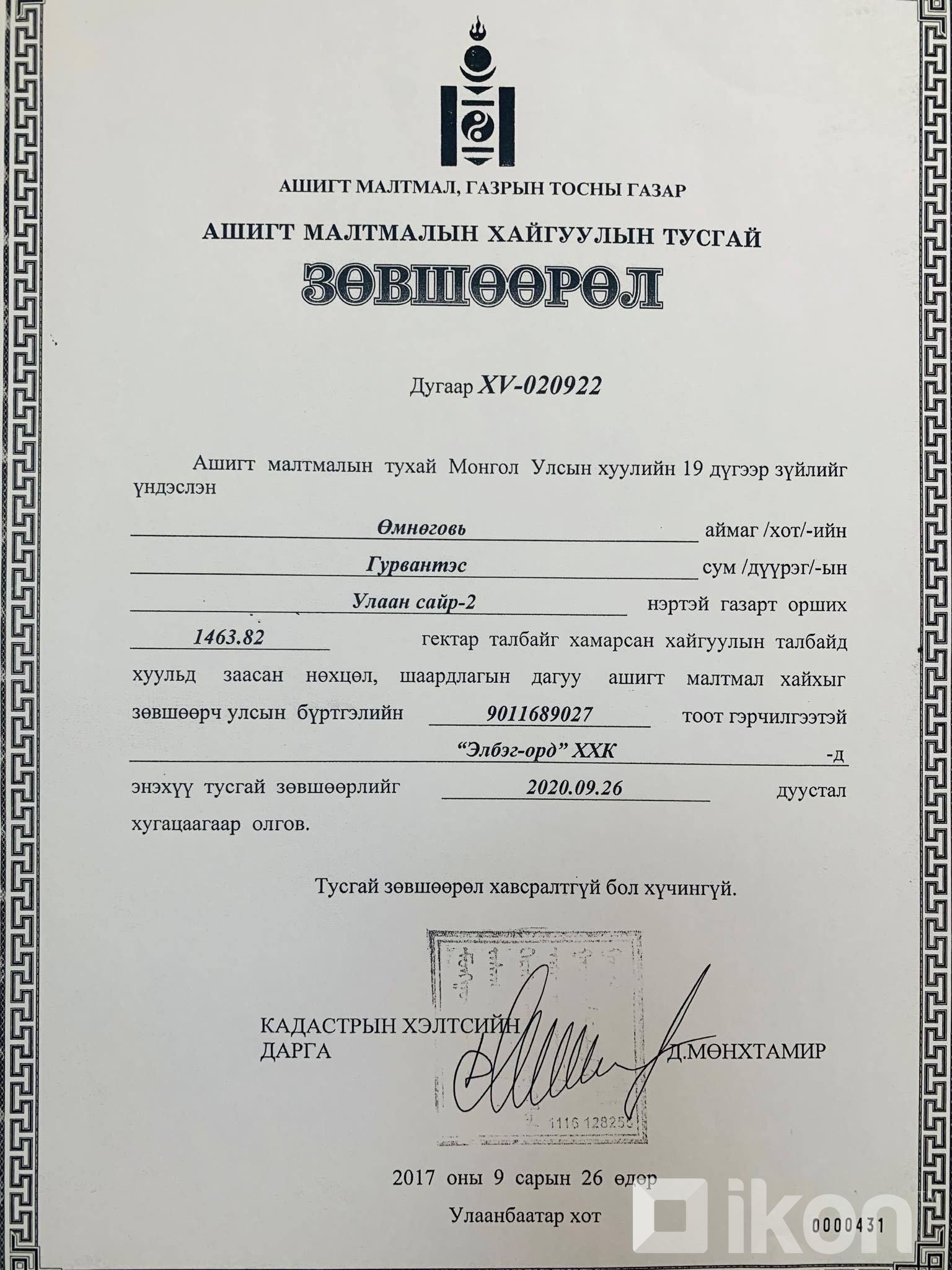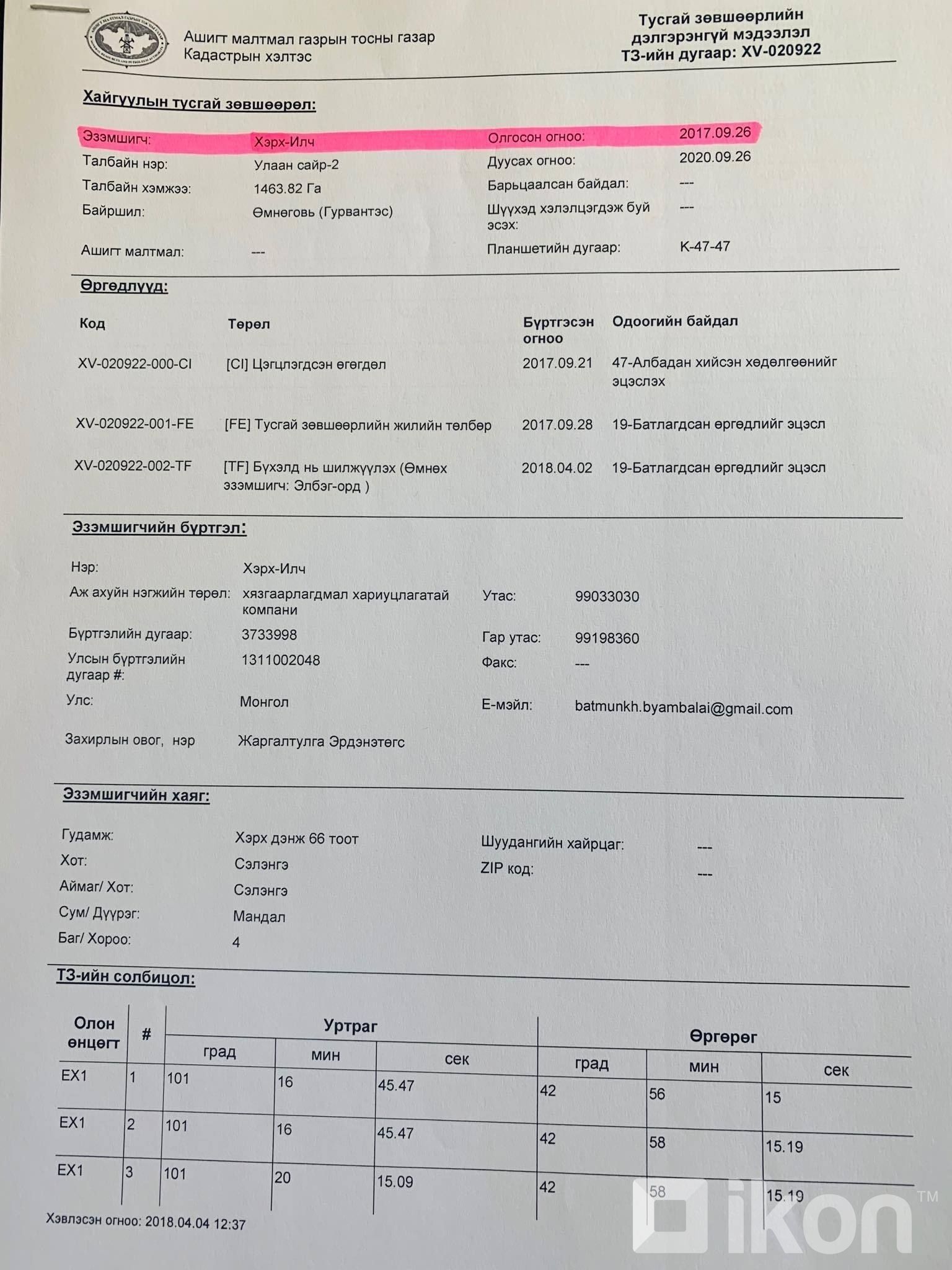 "Хэрх Илч" ХХК-ийн эзэмшдэг тусгай зөвшөөрөл XV-020922 байгааг та бүхэн анзаарч байгаа байх.