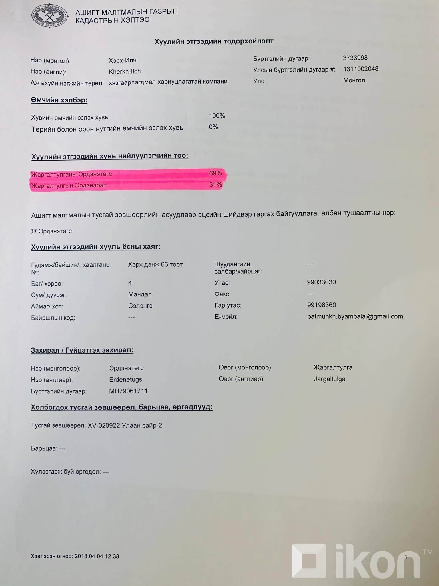 "Хэрх Илч" компанийн эзэмшлийг та дахин нягтлахыг хүсвэл ЭНД дарж үзнэ үү.