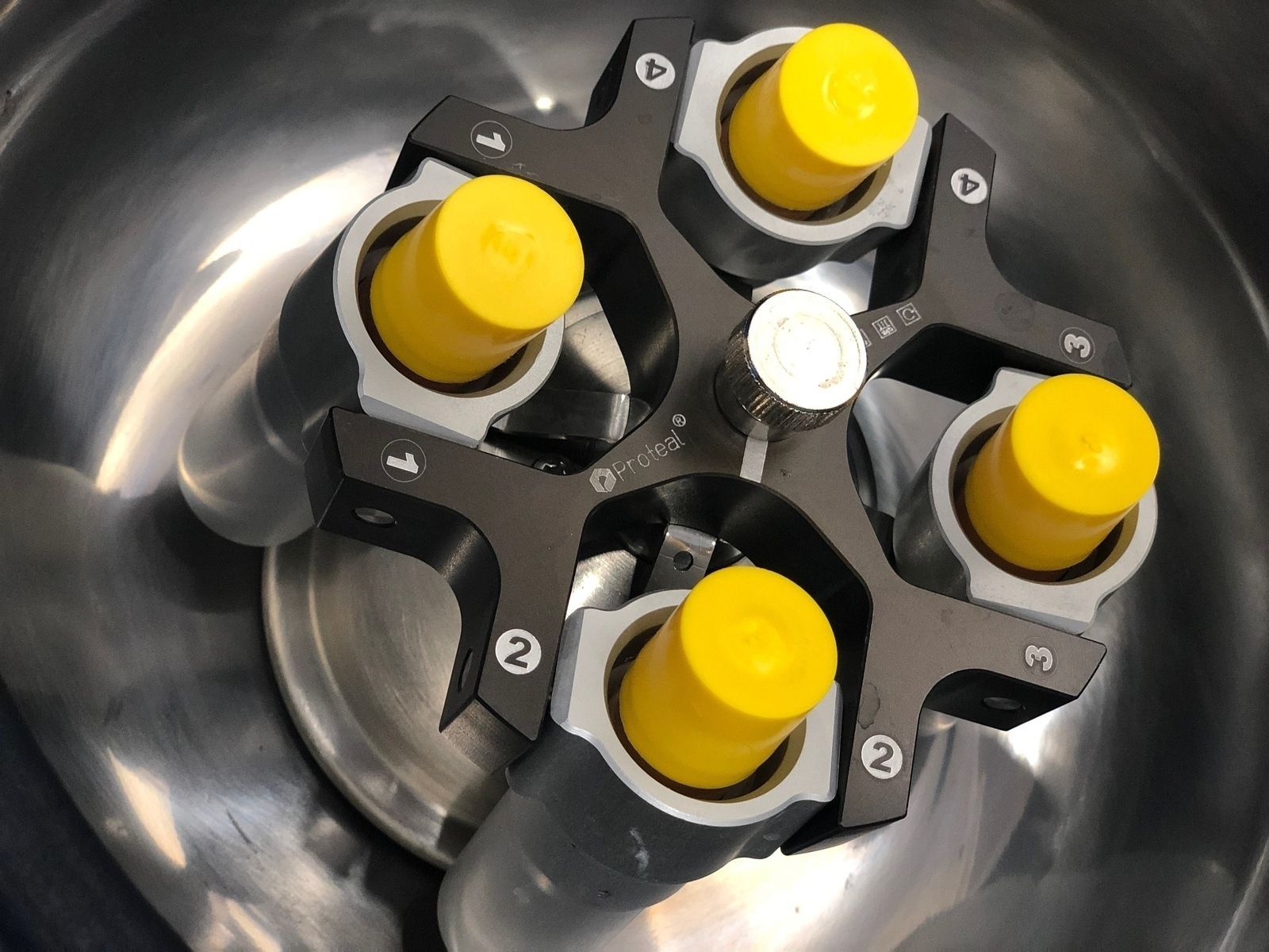 Хоёрт цусыг хийж эргүүлж байгаа машин чухал. PRP эмчилгээнд тусгай төхөөрөмжид цусыг хийж тохиромжтой хурдаар эргүүлж боловсруулан эсийг ялган авдаг. Эргэж байгаа хүч 400 нютоноос илүү хүчтэй байвал доторх эсүүд үхдэг. Эсүүд гэмтсэн байвал эмчилгээ үр дүнгүй болно.