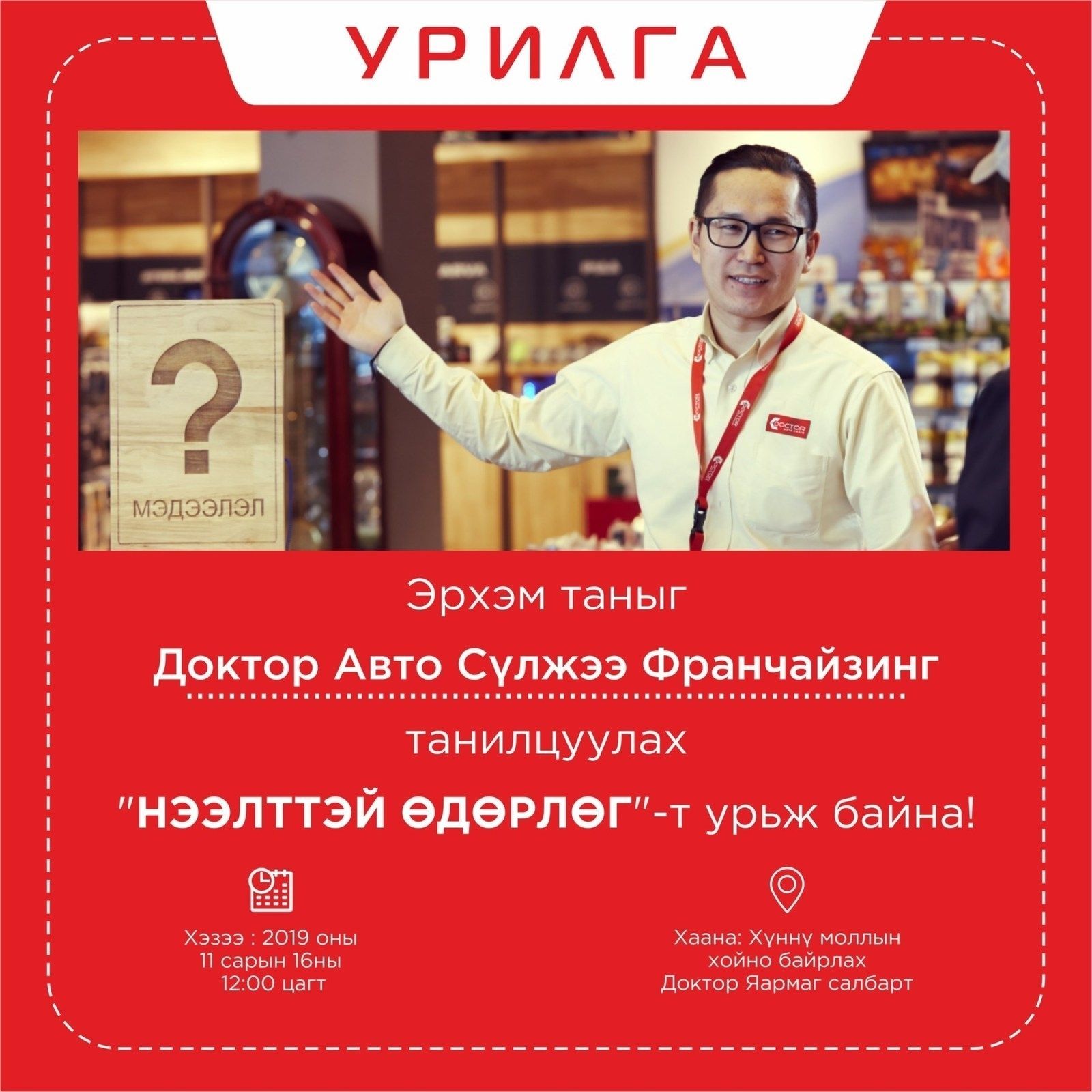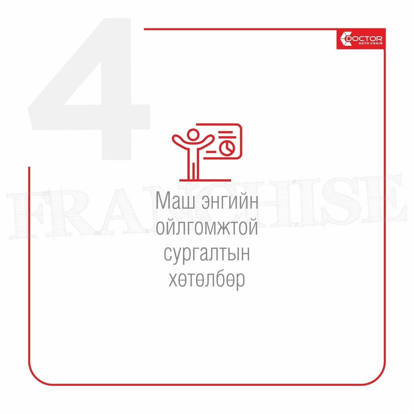 Доктор авто сүлжээний франчайз салбар нээхийг хүсэж байна уу? Тэгвэл ЭНД ДАРЖ бүртгүүлээрэй.
