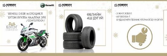 Шинэ жилийн баяр болон нээлтээ тохиолдуудал 12 сарыг “Машин дүүрэн бэлэг”-тэй сар болгон зарлаж автомашин худалдан авалт бүрт дараах бэлгүүдийг санал болгож байна.