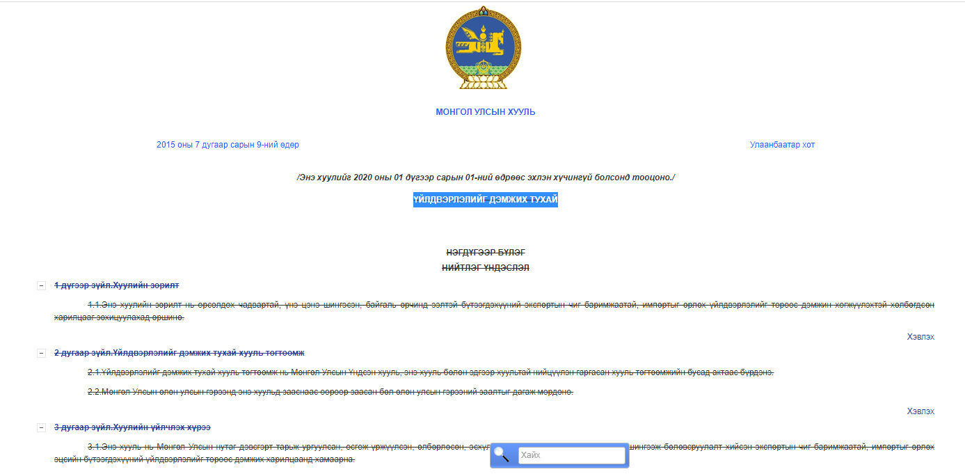 ХУУЧИРСАН МЭДЭЭ: 2020/01/15-НД НИЙТЛЭГДСЭН
