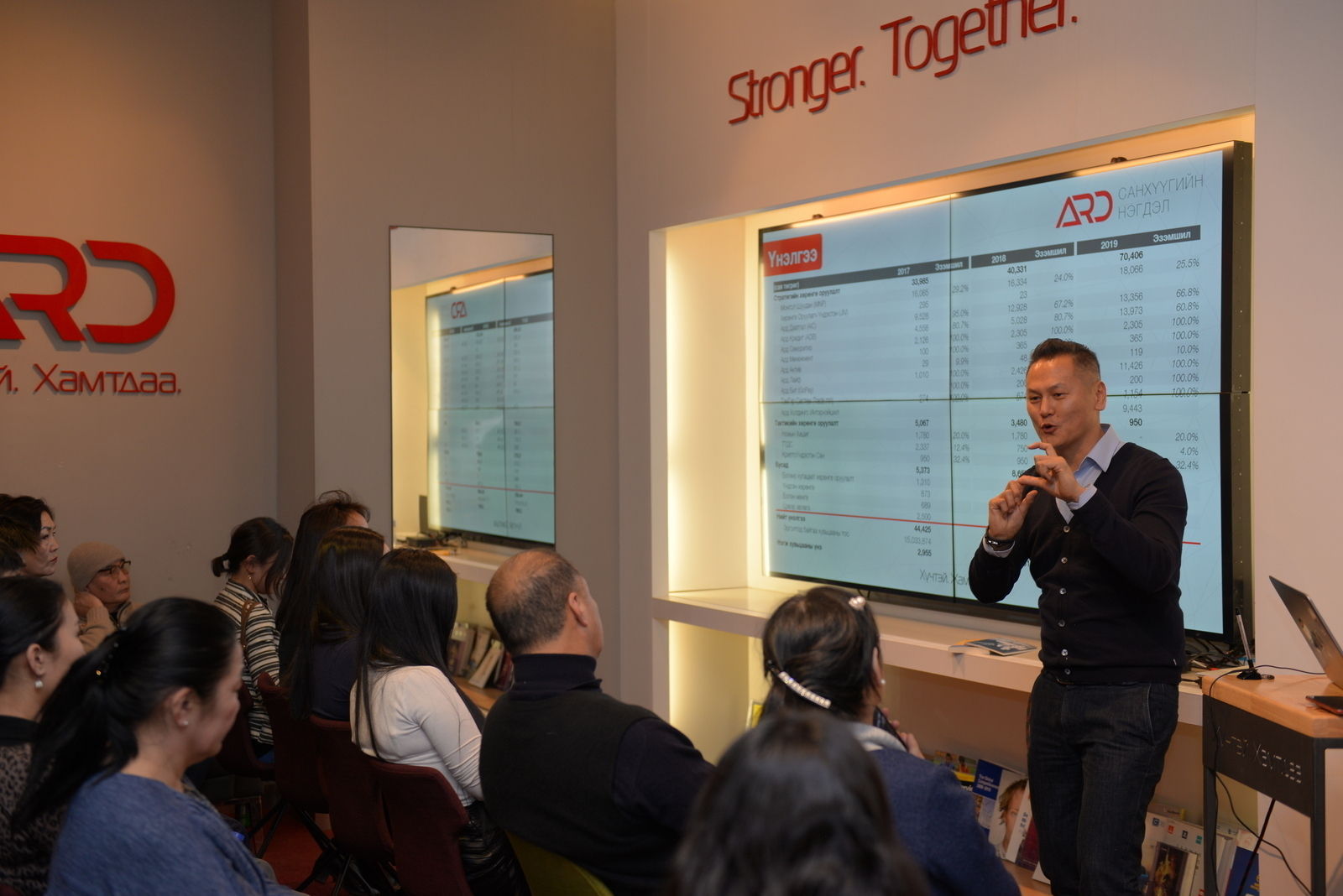 Бизнес гэдэг юун дээр тогтдог, хаанаас мөнгө орж ирдэг, бизнес хийхээр ямар зардал гардаг, ямар эрсдэл учирдаг вэ, энэ нь хувьцааны үнэд яаж нөлөөлдөг вэ, ашиг гарвал ногдол ашиг өгөх үү, эсвэл хувьцааны үнэ цэнийг нэмэгдүүлээд ажиллах уу гэдэг дээр шийдвэрээ хэрхэн яаж гаргаж байгаагаа тайлбарлаж ойлгуулж сургалт явуулах ажлыг тал талаас нь хийх ёстой байдаг. Түүний нэг нь манай “Монгол шуудан”, “Ард санхүүгийн нэгдэл”, “Ард кредит”, “Ард даатгал” компаниудын 2019 оны урьдчилсан тайлан юм. 10.000 орчим хувьцаа эзэмшигчдэдээ бид нар ингэж ажиллалаа, ийм алдаа дутагдал олж, амжилтыг гаргалаа гэж ярьж байгаа юм.