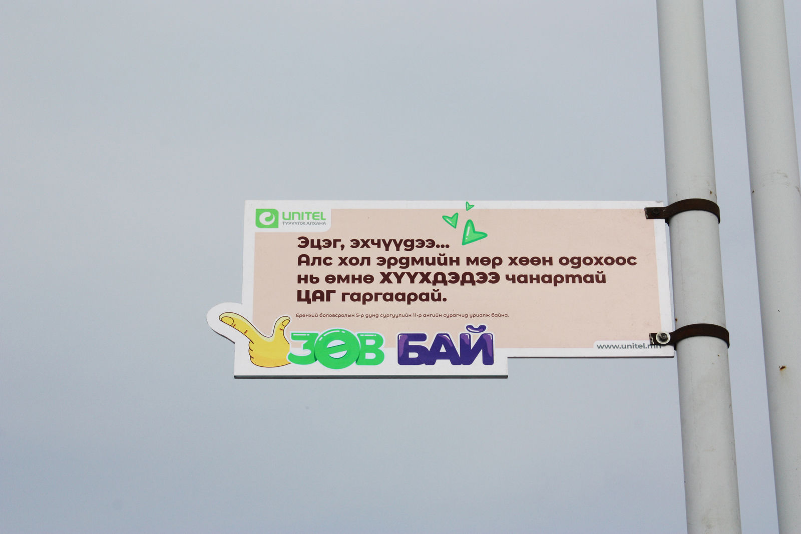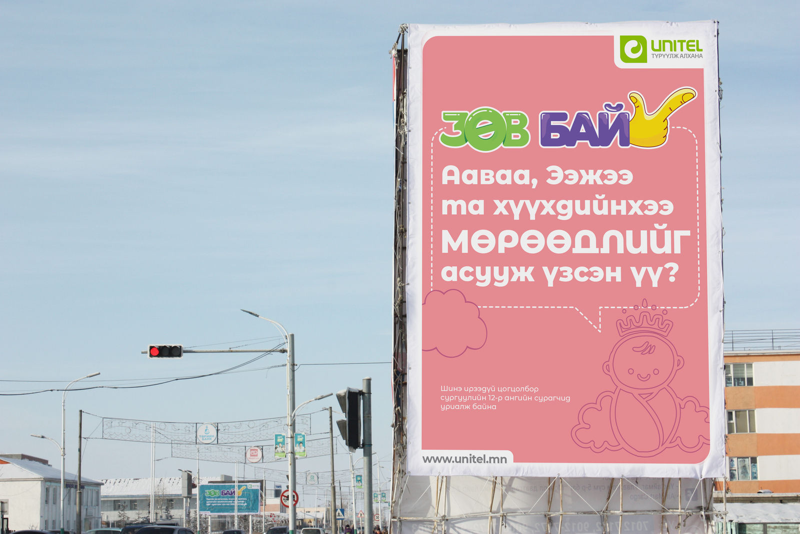 Бусдад сайныг түгээх гэхээс илүүтэй надад гай болно гэж бодох, хувийн орон зай нь л амар тайван байвал бусдад саад болох нь огтхон ч хамаагүй нийгэмд амьдарч байна. Түүнчлэн гэр бүлийн халуун дулаан уур амьсгал холдож, хүүхдийнхээ хүсэл мөрөөдлийг сонсох эцэг эхчүүд тун хомс болжээ. Тиймээс Увс аймгийн төв Улаангом хотын дунд сургуулийн сурагчид томчуудад хандсан “Зөв бай” уриалгыг гаргажээ. Энэхүү ажлыг Хөгжилд түүчээлэгч Монгол компани Юнител групп дэмжин ажилласан юм. Тус уриалгын хүрээнд Улаангом хотын гудамж талбай, гэрлийн шонгуудад тус агуулгыг шингээсэн самбаруудыг байршуулжээ. Мөн ахлах ангийн сурагчдийн дунд томчууд болон үеийнхэндээ хандсан “Зөв бай” бичил төслийн уралдааныг зарласан бөгөөд шалгарсан бүтээлч төслийг Юнител группээс санхүүжүүлэх ажээ.