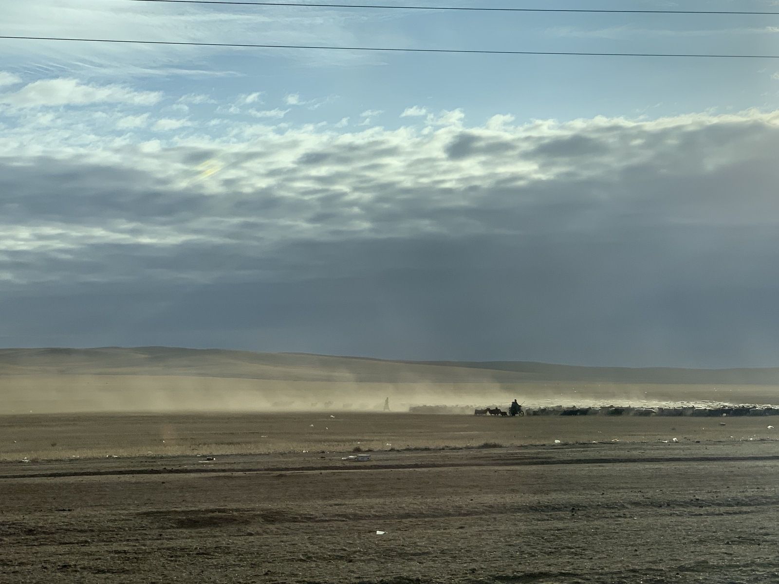 Өнгөрсөн намрын уртад “цаг цагаараа байх”-ыг хот, хөдөөгүй хүссэн дээ. Урт намар сүүл мушгиж, өвөл айсуй цаг дор малын хөлийн тоос тэнгэрт хадаж, ИХ НҮҮДЭЛ хөвөрсөн. 11 сар гарсан ч цасны аниргүй. Нүд гүйцэх эргэн тойронд гэр бараагаа ачаалсан портер машин, хонь, ямаа, үхэр, адуу холилдсон олон, цөөн мал туусан морьтон үзэгдэнэ. Нар сөргүүлэн харваас чимээгүй айдас төрүүлэх мэт тоос манарна. Нэгэн аймгийн мал нүүж яваа нь энэ. ИХ ЭРСДЭЛ чимээлэх шиг.