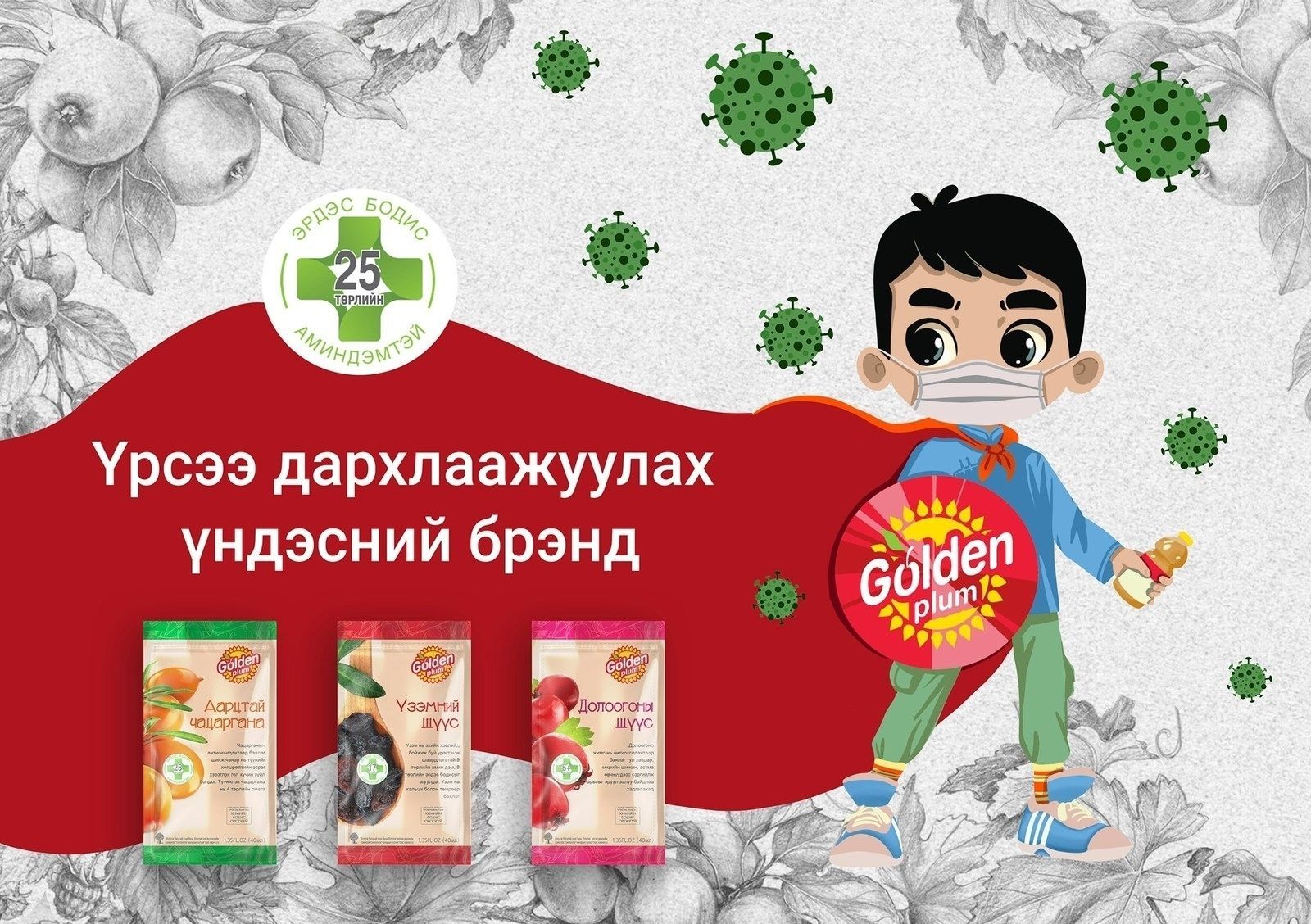 GOLDEN PLUM жимсний ундаа нь химийн болон хугацаа уртасгах ямар нэг нэмэлт бодисгүй, байгалийн цэвэр жимсний хандаар хийдэг, сахар багатай бүтээгдэхүүн тул хүн бүр өдөрт уух нь дархлаагаа дамжих энгийн бөгөөд хямд арга юм.