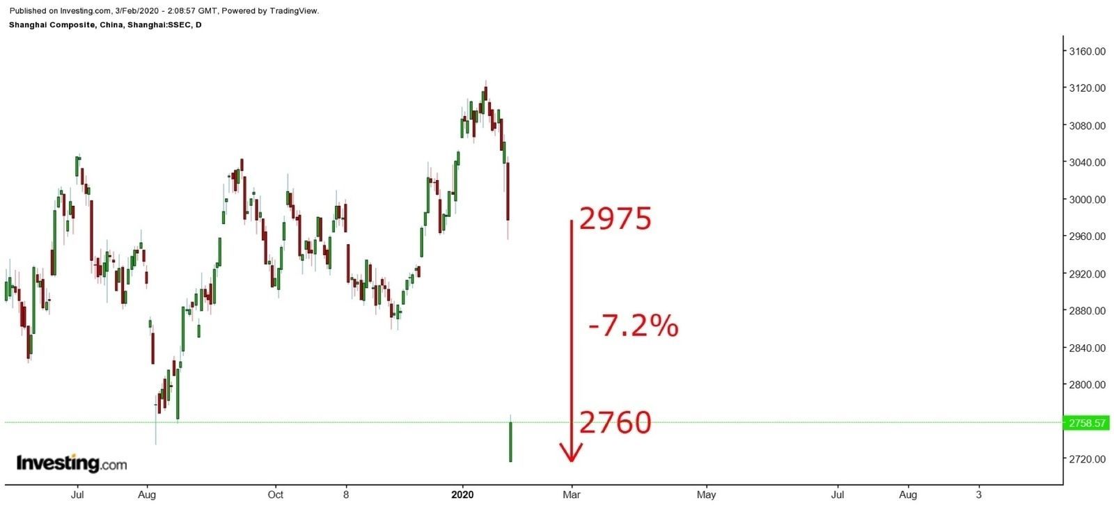 Коронавирусын халдвараас үүдэн Цагаан сарын дараагаас үргэлжлүүлэн амраад байсан Хятадын хөрөнгийн зах зээл өнөөдөр нээгдлээ. Хятадын хөрөнгийн зах зээлийг Шанхай болон Шеньжений хөрөнгийн зах зээл бүрдүүлдэг бөгөөд тус бүр 8-9 хувиар буурлаа. Үүнээс өмнө Хятадын Ардын банкнаас 1.2 триллион юаныг банкны сектортоо нийлүүлж хөрвөх чадварыг дэмжинэ гэдгээ зарласан.