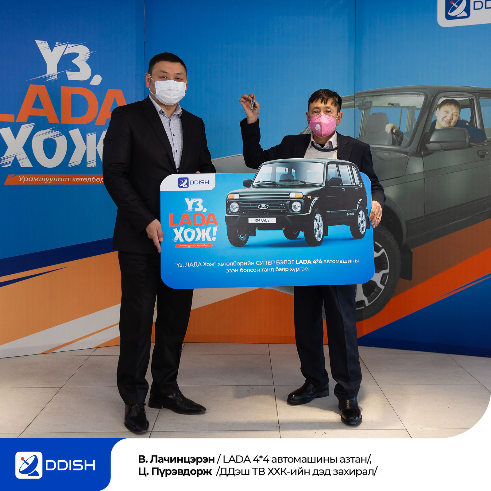 ДДЭШ-ээс нийт хэрэглэгчдийнхээ дунд цоо шинэ ЛАДА автомашины эзэн болох боломжтой “ҮЗ, ЛАДА ХОЖ” хөтөлбөрийг санаачилж, 2019.02.05-наас 2020.02.10-ны өдрийг дуустал 2 сарын хугацаанд хэрэгжүүлсэн юм. Өнөөдөр энэхүү хөтөлбөрийн азтан LADA 4*4 автомашинаа гардан авлаа.
