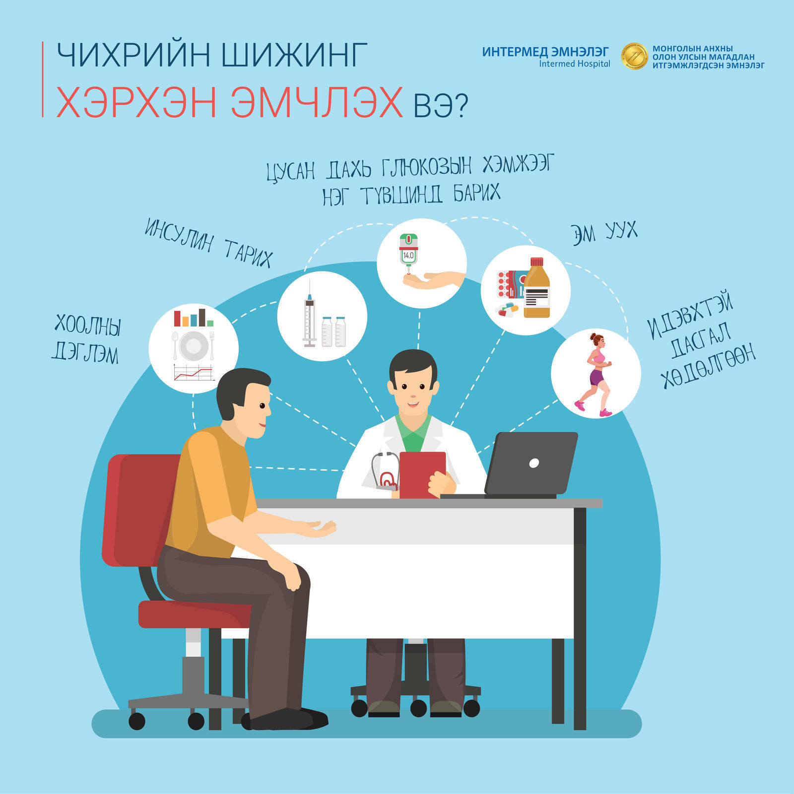 -Эмчилгээний тухайд гол нь амьдралын зөв хэв маяг маш чухал. Тухайн хүнд зөв хооллолт, хөдөлгөөний ач холбогдлыг маш сайн ойлгуулах ёстой. Хөдөлгөөний тухайд өдөр бүр 30 минут, эсвэл 7 хоногийн 150 минутын идэвхтэй хөдөлгөөн хийх, зөв хооллолт, глюкозын өөрийн хяналт, эм болон инсулин эмчилгээг эмчийн хяналтад хийж нь амьдралын турш л зохицуулна гэсэн үг юм.