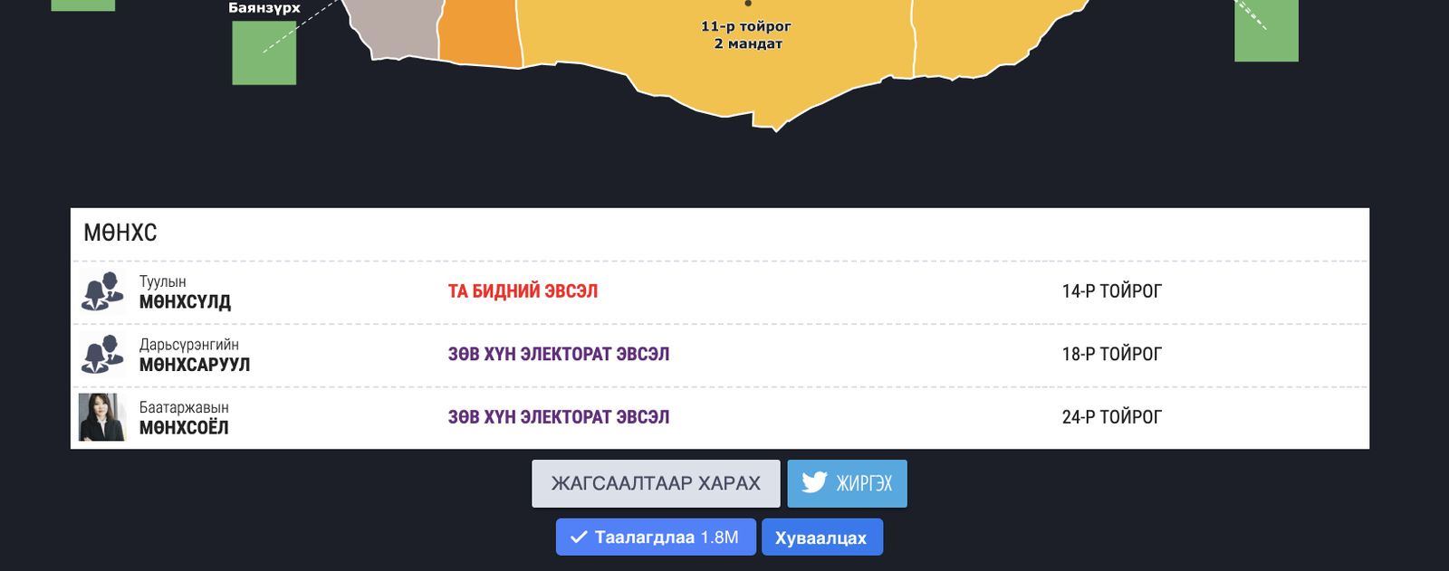 Тус хуудаснаас энэ удаад УИХ-д олон удаа сонгогдсон болон сонгогдож байгаагүй нэр дэвшигчдийг харах боломжтой боллоо.