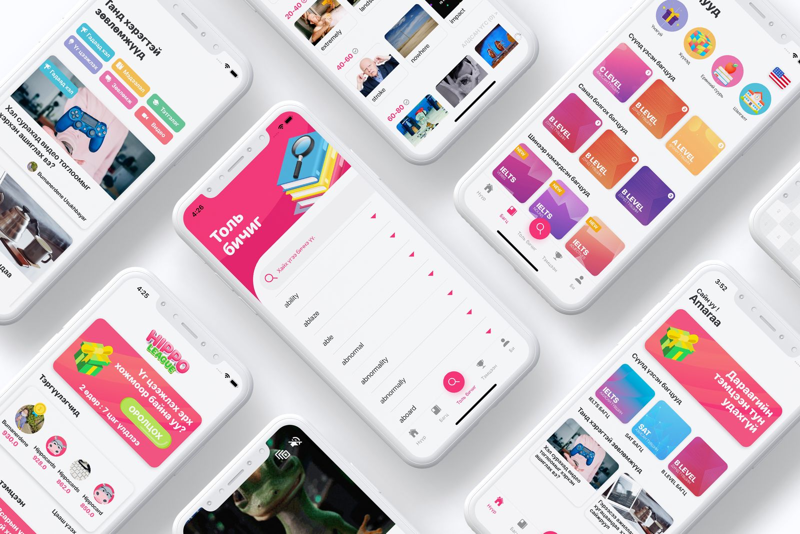 - Манай үгийн картууд хөгжилтэй хөдөлгөөнт зураг, төсөөллийн өгүүлбэртэй болохоор үг цээжлэхэд сонирхолтой хөгжилтэй байдаг. Хаяа Инстаграм, TikTok scroll-дож байхаар манай аппликейшний үгнүүдийг гүйлгэж хараад хөгжилтэй gif-нүүд үзэнгээ шинэ үг сурж байгаарай.