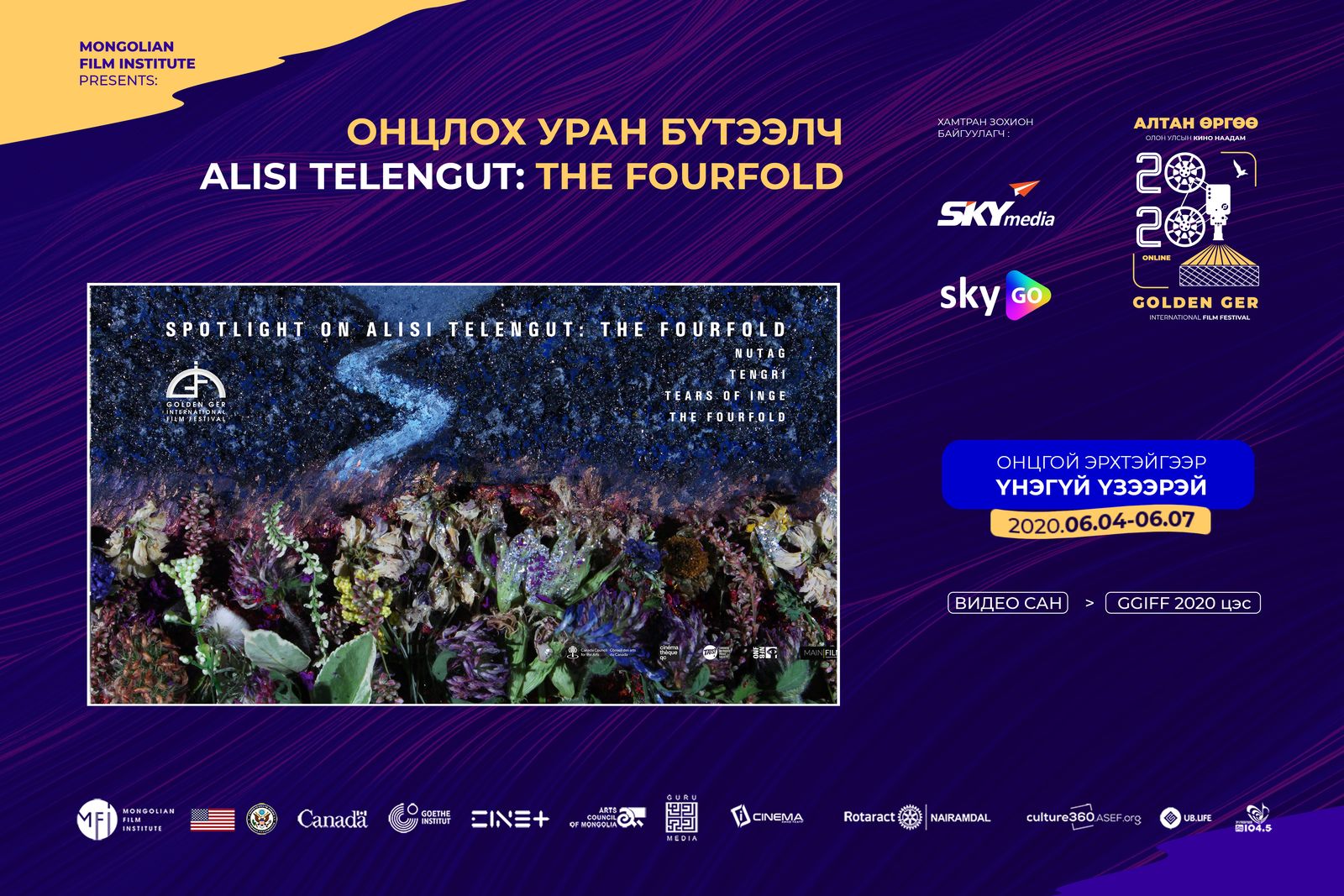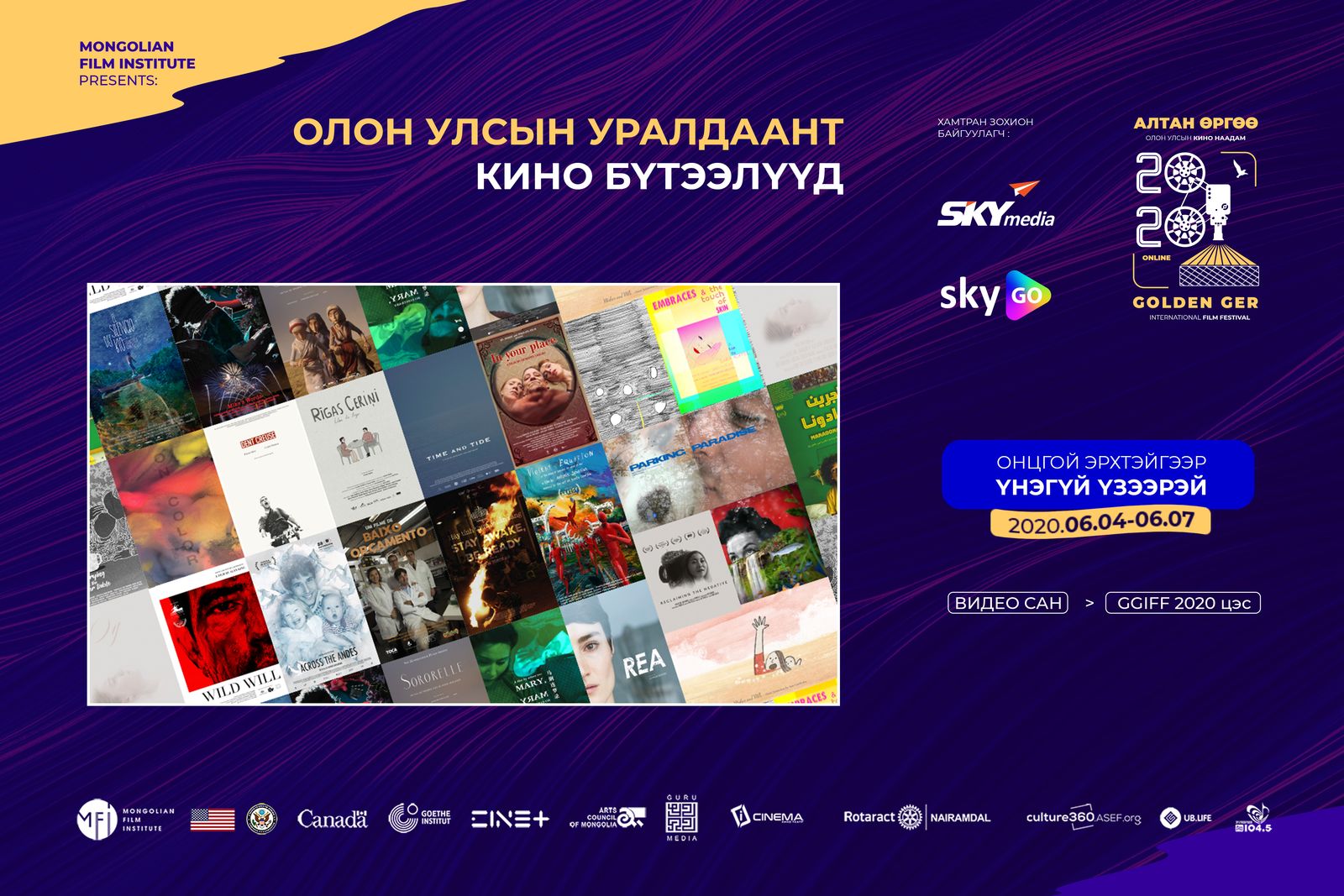 Монголын Кино Институтаас 8 дахь жилдээ зохион явуулж буй АЛТАН ӨРГӨӨ Олон Улсын Кино наадам (GGIFF) 6-р сарын 4-нөөс 7-ны хооронд зөвхөн СКАЙмедиа, SkyGO-ийн видео сангаар онцгой эрхтэйгээр үзэгчдэд хүрч байна.