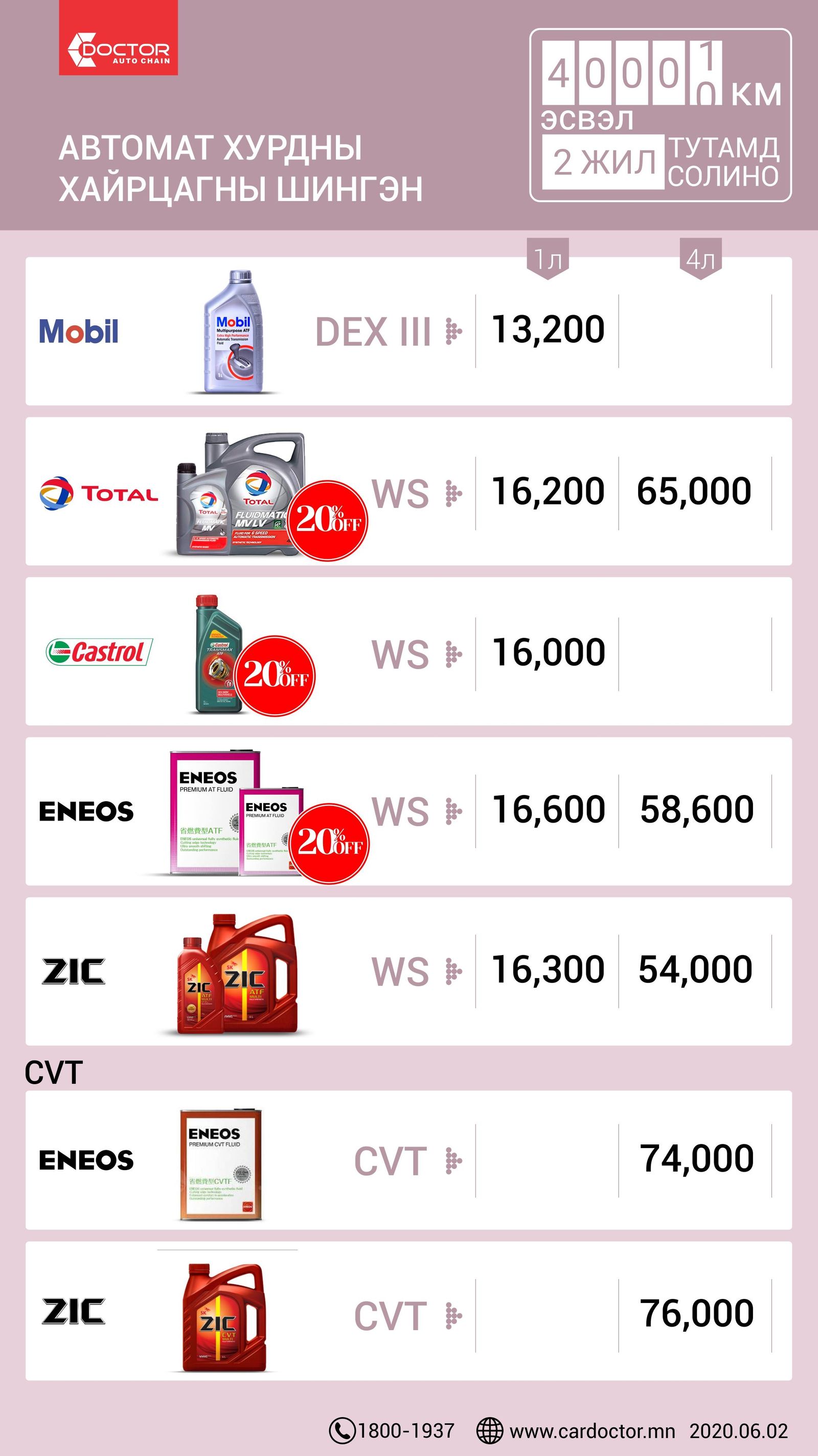 Дээрх урамшууллаас гадна зөвхөн 6-р сарыг дуустал сонгогдсон автомат кропны тос энэ үнээс 20% хямдрах боллоо.