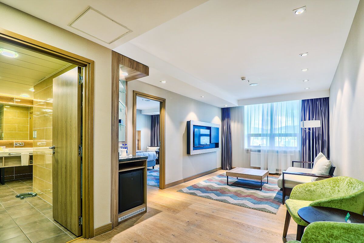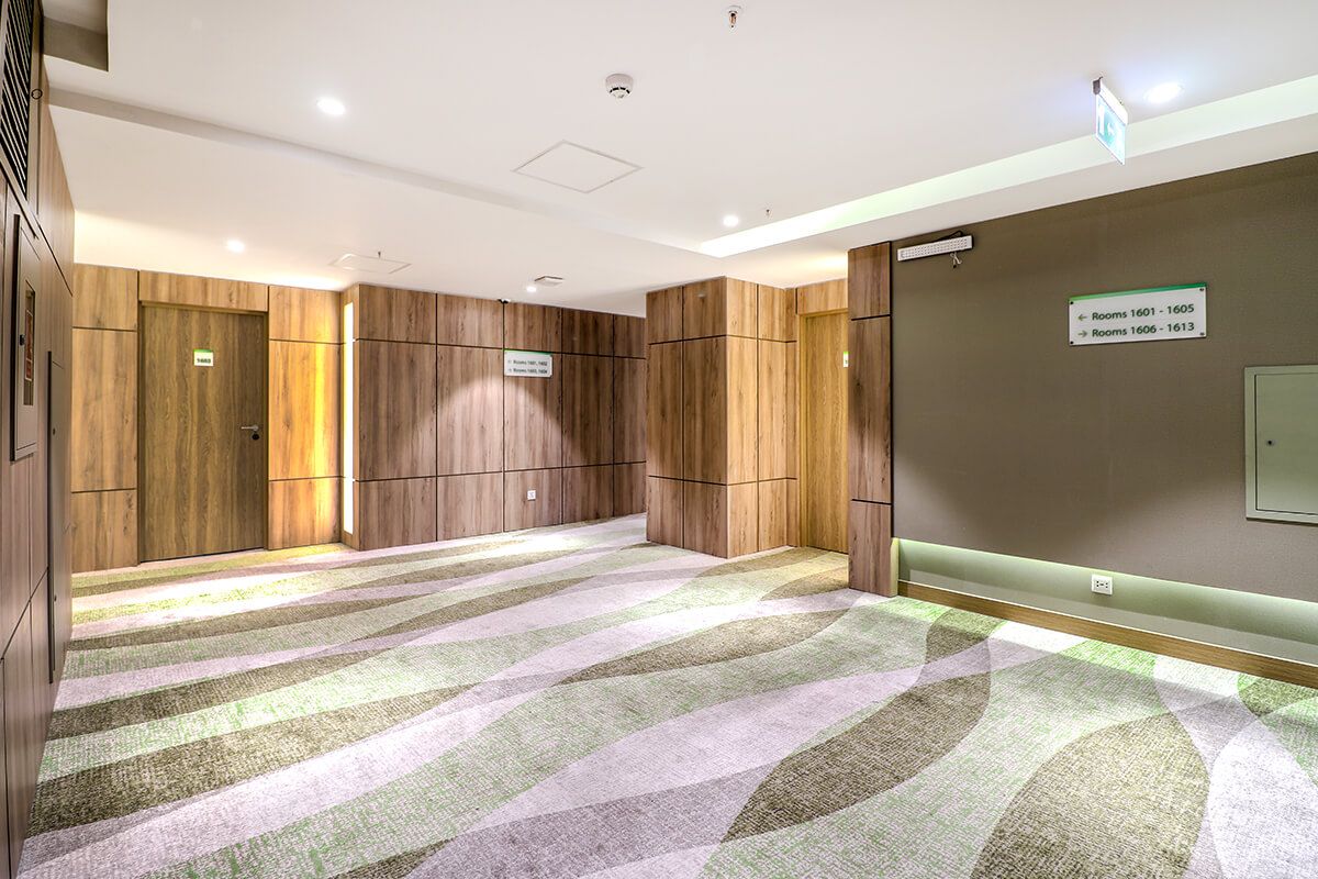 Олон улсын зочид төлөөлөгчдийн тав тухыг хангах таван одтой зочид буудлын өрөө, баяр баяслаар дүүрэн хүндэтгэл, ёслолын цэнгүүн зохиогдох өргөө танхим гээд Holiday inn зочид буудлын хүндтэй хэсэг бүрийг Эрдэнэт хивс чимэв.