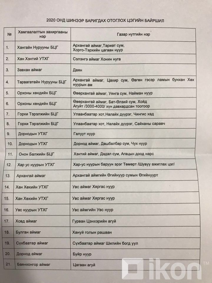 Харин 2020 онд Хяргас нуур, Өгий нуур, Хар ус нуур, Буйр нуур зэрэг 20 орчим байрлалд зориулалтын авто зогсоол, ариун цэврийн газар бүхий отоглох цэгүүдийг байгуулах ажлуудыг эхлүүлсэн гэдгийг тэрбээр нэмж хэлэв.