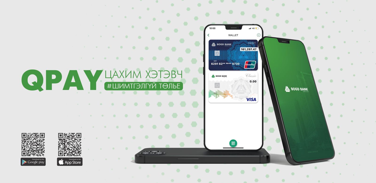Богд банк нь харилцагчдынхаа хэрэгцээнд тулгуурлан зах зээлийн эрэлтэд нийцсэн төлбөр тооцоог түргэн шуурхай, үр ашигтай гүйцэтгэх бэлэн бус орчин үеийн дэвшилтэт шинэ хэрэгслүүдийг тогтмол үйл ажиллагаандаа нэвтрүүлэхийг зорин ажилладаг. Энэхүү зорилгын хүрээнд саяхан нэвтрээд буй төлбөр тооцооны хамгийн хялбар, шинэлэг технологи болох Qpay цахим хэтэвчинд BOGD MOBILE аппликейшнаар дамжуулан ашиглах боломжтой болсныг дуулгахад таатай байна.