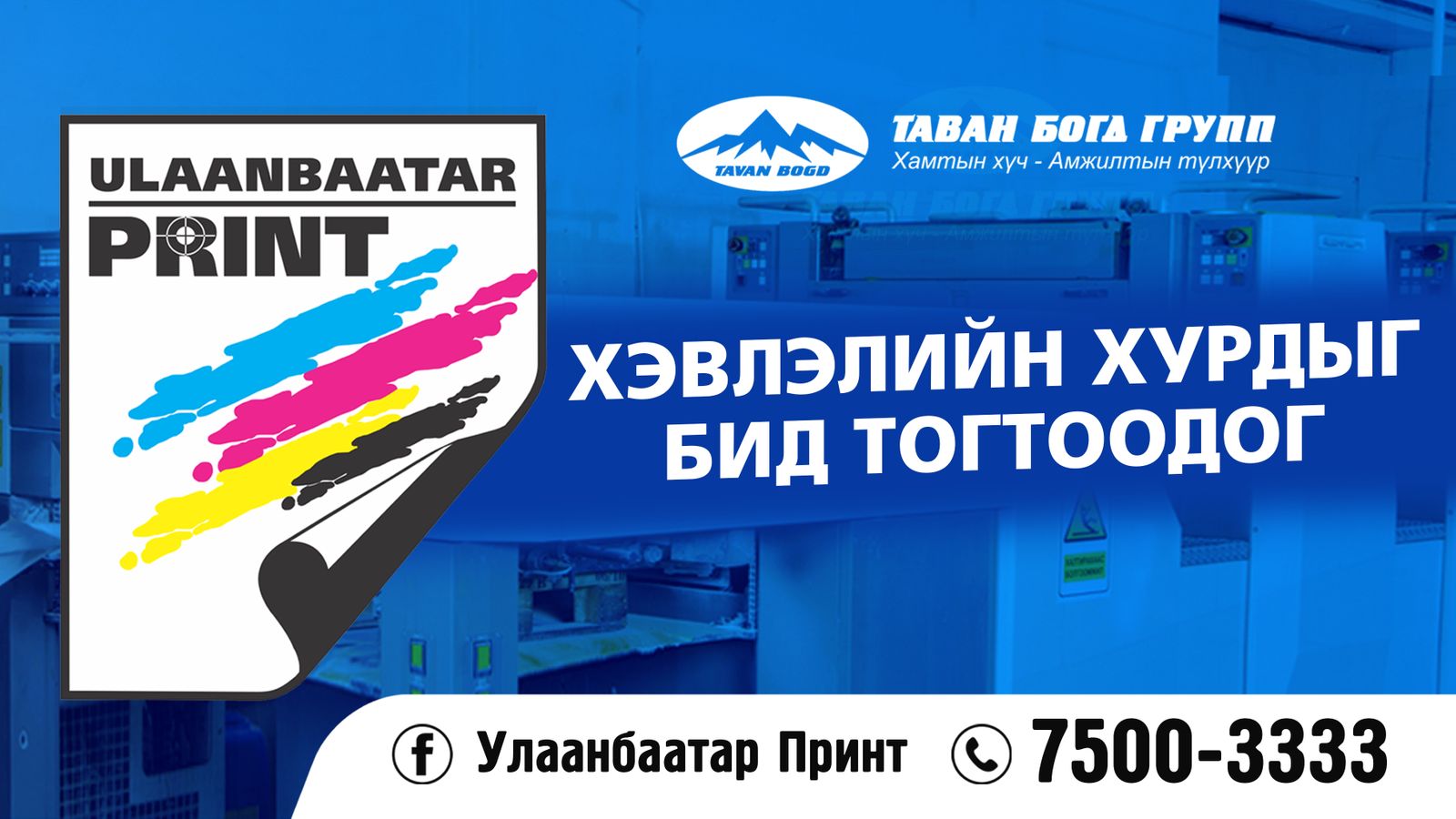 24/7 цагийн хэвлэлийн үйлчилгээтэй, чанар , хурдаараа тэргүүлэгч Улаанбаатар Принт үйлдвэрт хэвлэлийн захиалга өгөх утас: 7500-3333
