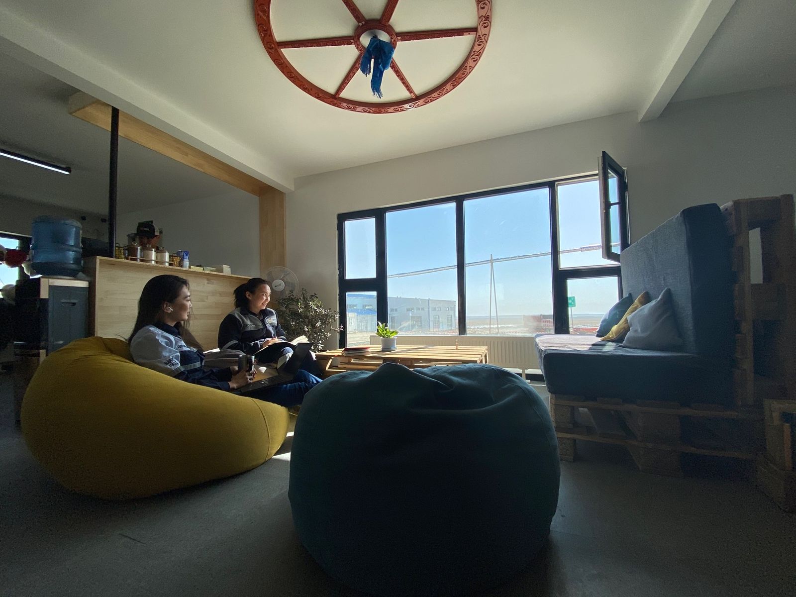 -Оффис маань том цонхтой, харагдах орчин сайтай, цэлгэр байхаар зурагдсан. Өглөө кофе, цай уунгаа цонхоороо Баянхонгор аймгийн алдарт Их Богд хайрханг харах дуртай. Гадны болон дотоодын жуулчид мөнгө төлж ирж үздэг хайрханг бид нар оффисынхоо цонхоор харж байгаадаа их баяртай байдаг бас их азтай гэж боддог.