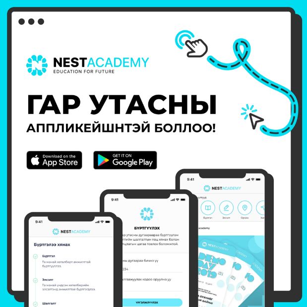Хөтөлбөрийн бүртгэл эхэлж байгаа тул Nest Academy апп-ийг IOS/Android утсан дээрээ цаг алдалгүй татаж аваад бүртгүүлэх боломжтой.