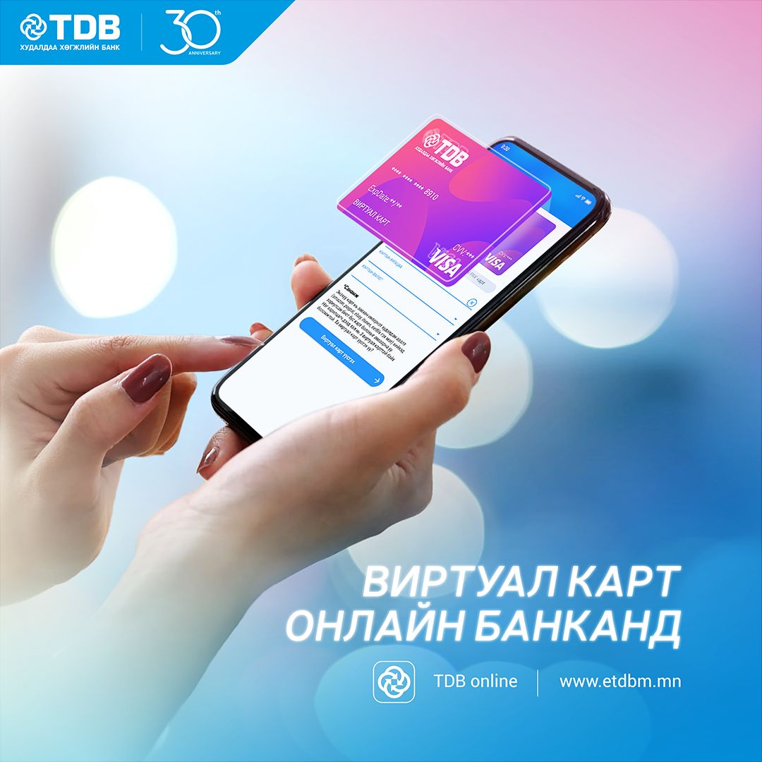 Худалдаа, хөгжлийн банк дэвшил бүхний анхдагч байхыг зорьж Монгол улсад анх удаа төлбөрийн картыг хүлээн авах үйлчилгээ, анхны зайнаас төлбөр хийх “Contactless Card” зэрэг технологиудыг нэвтрүүлж байсан түүхтэй. Энэ удаад харилцагч Та бүхэндээ шинэ үеийн “ВИРТУАЛ КАРТ”-г санал болгож байна. Уламжлалт биет карттай харьцуулахад TDB ONLINE апплекейшнд хадгалагддаг учир хаяж гээх, үрэгдүүлэх, гэмтээх, хулгайд алдах эрсдэлээс бүрэн хамгаалагдана. Мөн банкан дээр өөрийн биеэр ирж захиалах, захиалсан картаа хүлээлгүйгээр TDB ONLINE апп-аа ашиглан олон улсын эрхтэй картаа хормын дотор үнэгүй авах боломжтой.