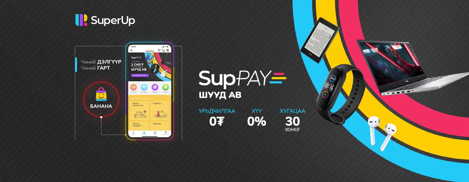 “Шууд авах” арга нь маш энгийн. Ердөө л SuperUp-ийн онлайн дэлгүүр болох Банана-руу ороод, SupPAY тэмдэглэгээ бүхий 300 гаруй брэндийн 6000 гаруй нэр тѳрлийн бүтээгдэхүүнээс сонголтоо хийхэд л хангалттай.