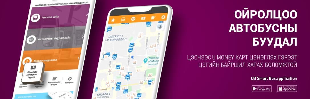 Мөн UB Smart Bus аппликейшны ОЙРОЛЦОО АВТОБУСНЫ БУУДАЛ цэснээс “U money карт” цэнэглэх гэрээт цэгийн байршил харах боломжтой ба та гар утасныхаа GPS-ыг асаахаа мартуузай.
