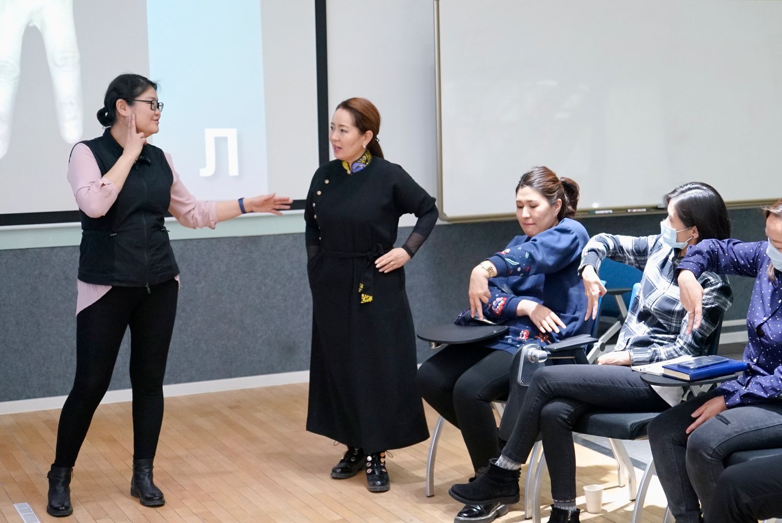 Сургалтыг МҮОНТ-ийн мэдээллийн хөтөлбөрийн хэлмэрч, “Алтан нар” одонт С.Бямбадэлгэр болон Сэргээн засалт сургалт үйлдвэрлэлийн төвийн-Мэргэжлийн Ур чадвар олгох сургуулийн багш Р.Оюунцэцэг, Н.Ундрал нар биечлэн орсон юм.