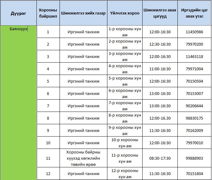 Тус дүүрэгт коронавирусийн халдвар илрүүлэх шинжилгээг дараах цэгүүдэд авч байгаа бөгөөд дээрх хоёр хорооны иргэд 19001063 дугаараас зөвлөгөө, шинжилгээний талаарх мэдээлэл авах боломжтой юм байна.
