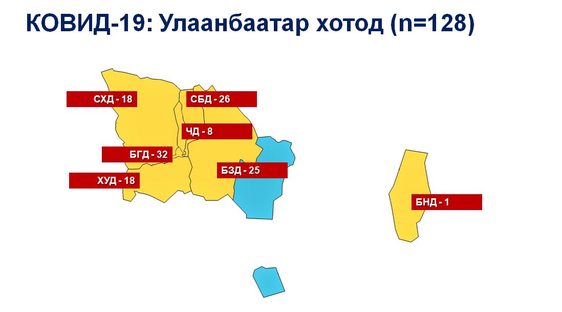 - 2020.11.22: Улаанбаатарт 2, Сэлэнгэд 19, Дархан-Уулд 4, Дорноговьд 1 тохиолдол шинээр бүртгэгдэж, нийт халдварын тоо 608 боллоо.