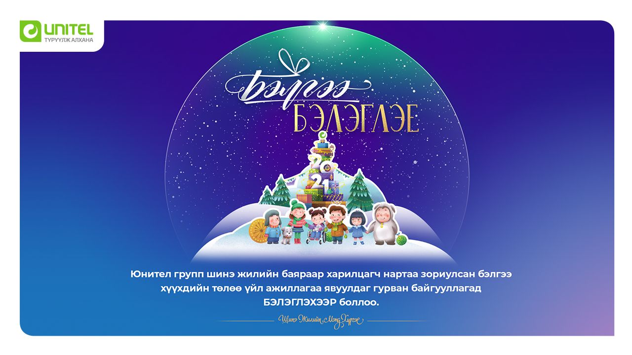 Жил бүрийн шинэ жилийн баяраар байгууллагууд харилцагч нартаа сайн сайхныг хүсэж шинэ жилийн бэлэг илгээдэг билээ. Тэгвэл Юнител групп шинэ жилийн баярыг тэмдэглэн өнгөрүүлэх хэв маягаа энэ жил өөрчилж харилцагчдадаа биет бэлэг өгөлгүй дижитал бэлэг илгээхээр боллоо. Дижитал бэлгээр дамжуулан хүүхдийн төлөө үйл ажиллагаа явуулдаг гурван байгууллагад бэлгээ бэлэглэх сонголтыг санал болгож бусдад хайр халамж, аз жаргал түгээх үйлсэд уриалан дуудах юм.