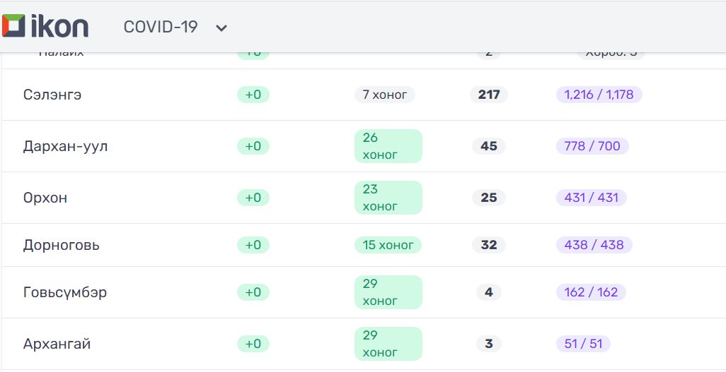 Эрүүл мэндийн яамны хэвлэлийн хурлаар сүүлийн 24 цагийн дотор Сэлэнгэ, Дархан-Уул, Говьсүмбэр, Орхон, Архангай, Дорноговь аймгийн голомт болон Улаанбаатар хотын өмнөх голомтоос халдвар нэмж бүртгэгдээгүйг зарлав.