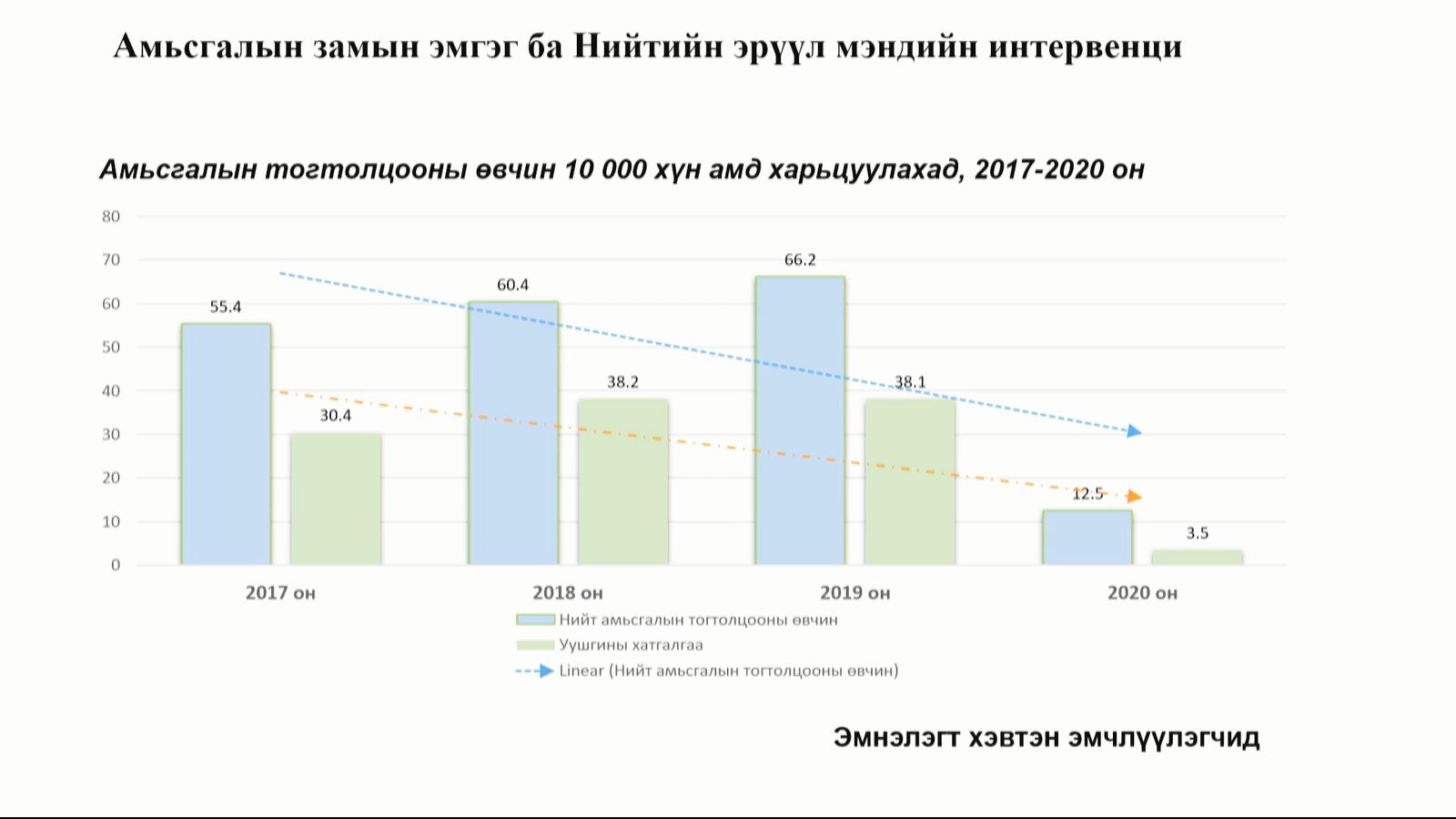 Тэрбээр "Амьсгалын замын өвчлөлийн үед амны хаалт зүүх, гараа угаах, зай барих нь ямар чухал болох нь харагдаж байна. Манай улсад жил бүр амьсгалын замын өвчлөл гардаг. Тухайлбал, 2017, 2018, 2019 онд 10,000 хүн тутмын 66 нь амьсгалын замын өвчнөөр өвчилж байсан. Харин 2020 онд 10,000 хүн тутмын 12.5 нь амьсгалын замын өвчнөөр өвчилжээ.