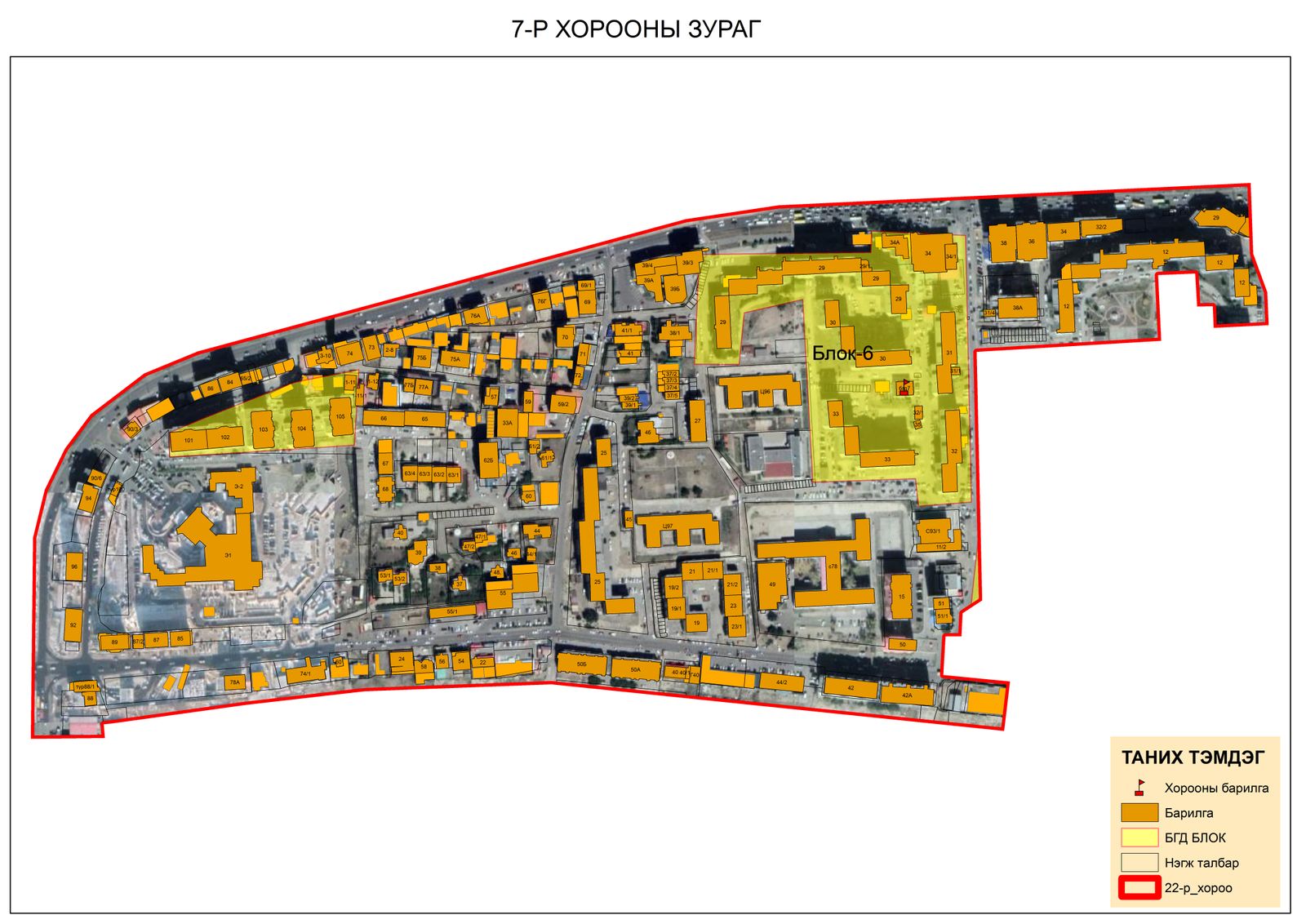 - 7-Р ХОРОО (БЛОК-6) - 29, 30, 31, 32, 33-р байр, 102, 103, 104, 105, (Блок-21) 101, 102, 103, 104, 105-р байр