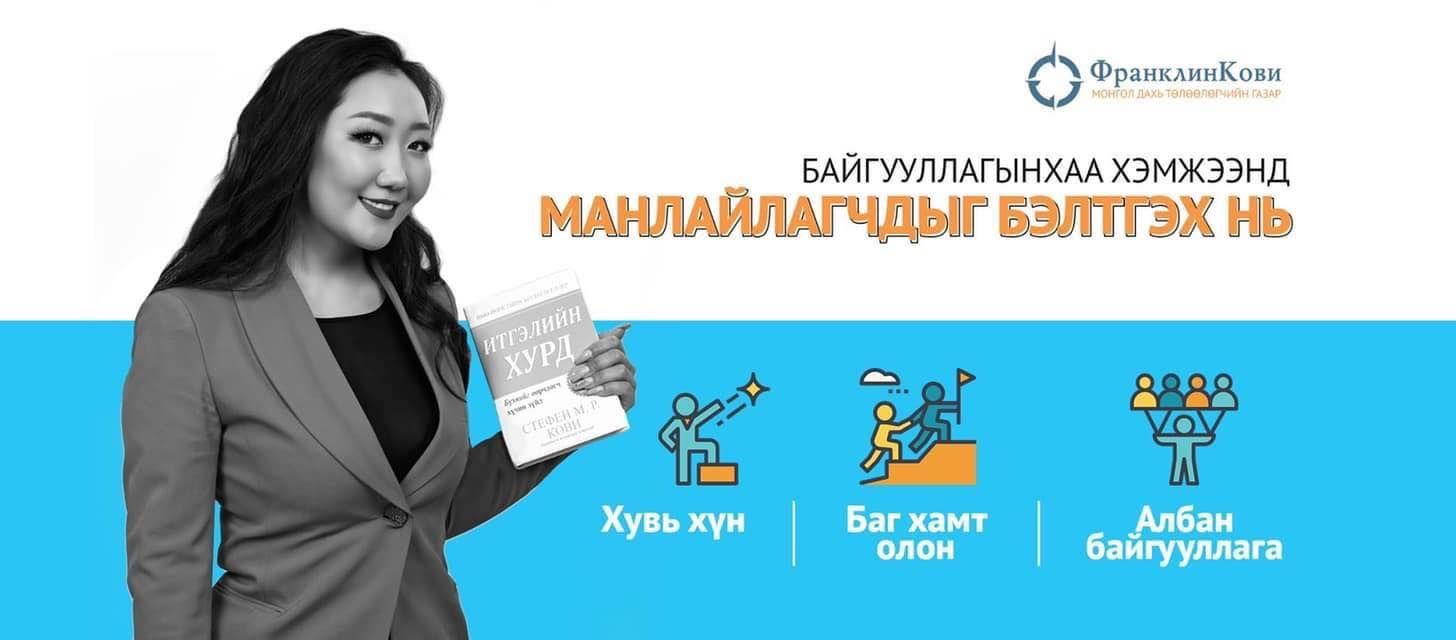 -Энд нэг зүйл онцолж хэлье л дээ. Бид “Өндөр бүтээмжтэй хүний 7 дадал” номынхоо ганцхан орчуулгад нийт 15 сая төгрөг зарцуулсан. Энэ номыг шинэчилж, сайжруулан гаргахын тулд бүтэн нэг жилийн хугацааг зориулжээ. Ингэхдээ тухайн номын агуулгыг Монгол хүний сэтгэхүйн зан төлөвт тааруулан буулгаснаараа онцлогтой. Бидний сайн мэдэх “Эзэн хичээвэл заяа хичээнэ” гэх хэлц үгийн цаад тайлал, утга учрыг зөв дадал болгох дэлхийн шинжлэх ухааны хүлээн зөвшөөрөгдсөн ойлголтыг хөрсөн дээр буулгаж сургалтад оролцогч нартаа сургалт, номоороо хүргэн ажиллаж, чиглүүлж байна гэсэн үг. Монгол хэл дээр хувь хүний, байгууллагын, багийн бүтээмжийг өсгөж болох ямар үгийн баялаг шаардлагатай байна түүнийг нь төгс хэлбэрээр хөрвүүлсэн. Үүний үр дүнг маркетинг хийхгүй хэрнээ маш их борлуулалттай байгаагаар дүгнэж болно. Би маркетингаар богинохон хугацаанд ашиг олохын тулд бус харин үнэ цэн нь 30 жилээ хадгалж чадахуйц, тасралтгүйгээр хүмүүсийн ажил амьдралд өөрчлөлтийг авчраасай гэж хүссэн.
