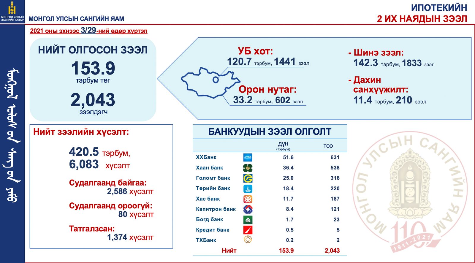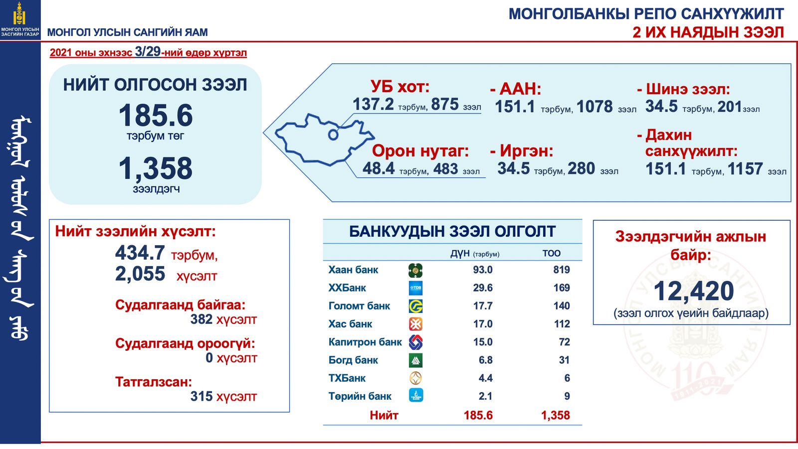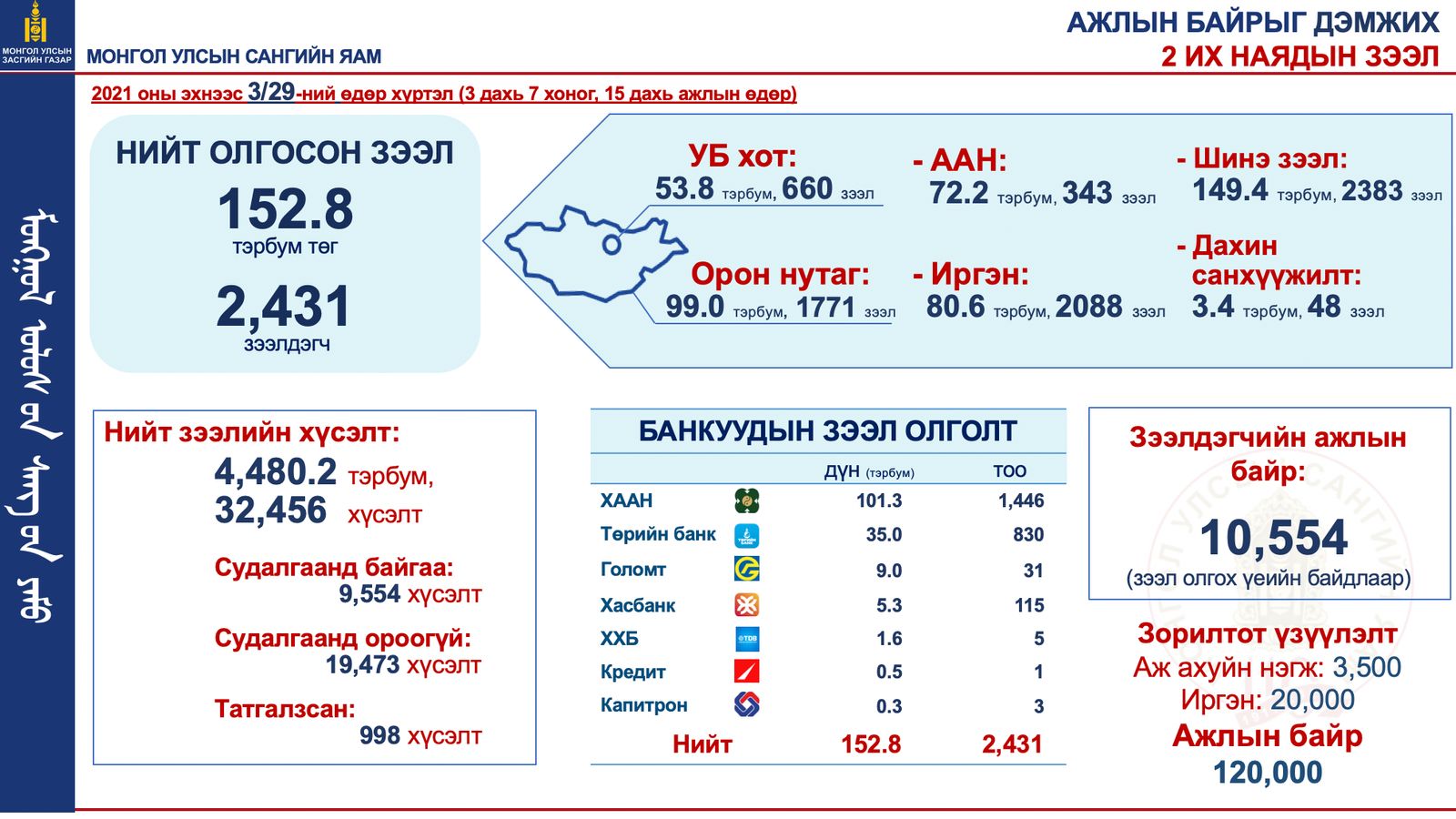 Түүнчлэн тэрбээр "Гурван хувийн хүүтэй зээлийг төрийн зохион байгуулалтаар банкны эх үүсвэрээр олгож байгаагүй. Энэ нь олон иргэн, аж ахуйн нэгжид дэмжлэг болж байгаа бөгөөд тавдугаар сар гэхэд гүйцэтгэл нь өндөр болно. Цаашид зээл авах нөөц боломжтой аж ахуйн нэгжүүд их байвал энэхүү зээлийг үргэлжлүүлэх боломж, эх үүсвэрүүдийг судалж байна" гэсэн юм.