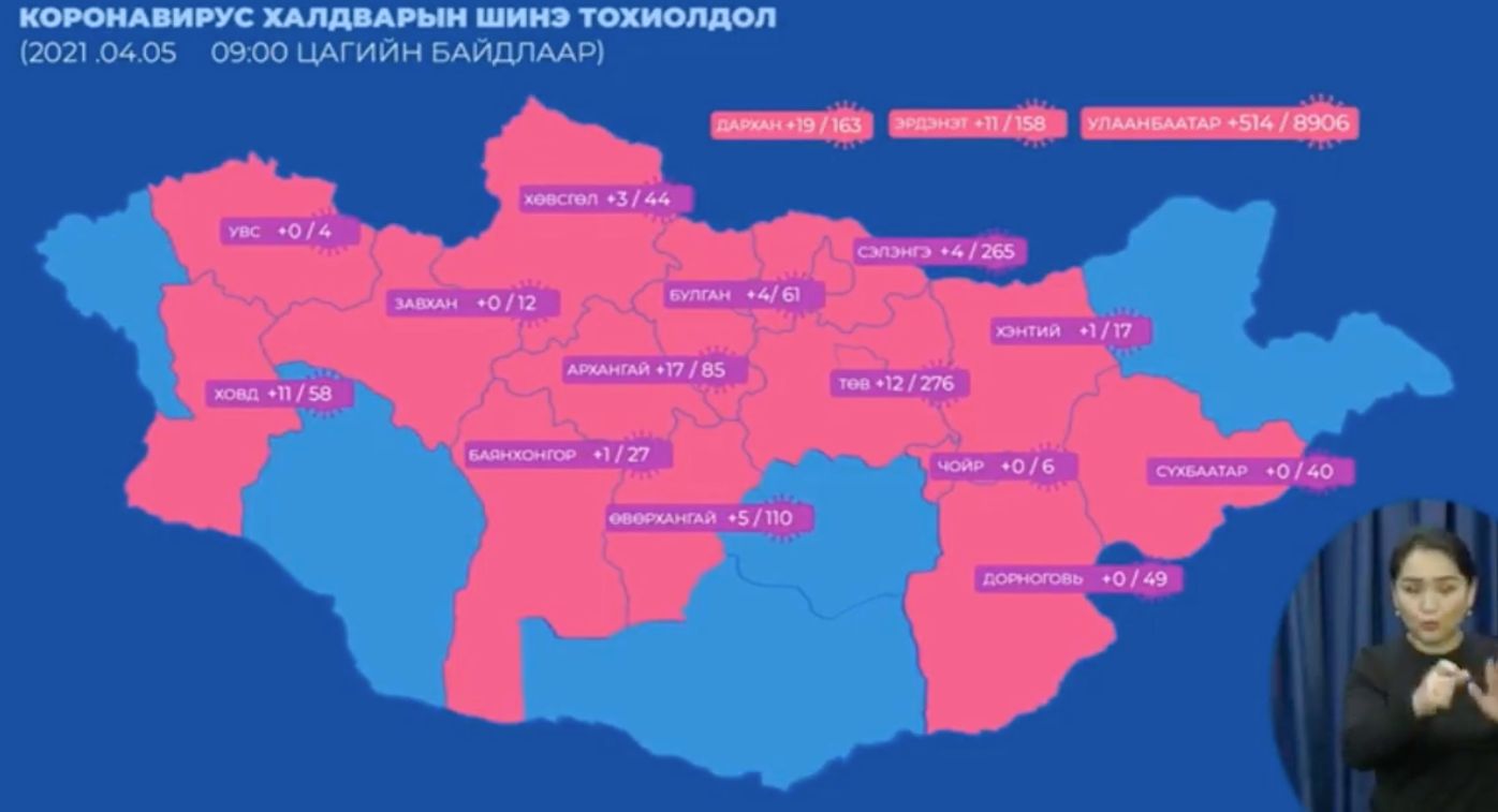 Мөн өнгөрсөн хоногт нэг нас баралт бүртгэгдлээ. Нас барсан хүн 60 гаруй настай, эрэгтэй. Маш хүнд байгаа хүний тоо нэмэгдэхийн хэрээр нас баралт нэмэгдэж байна" гэлээ.