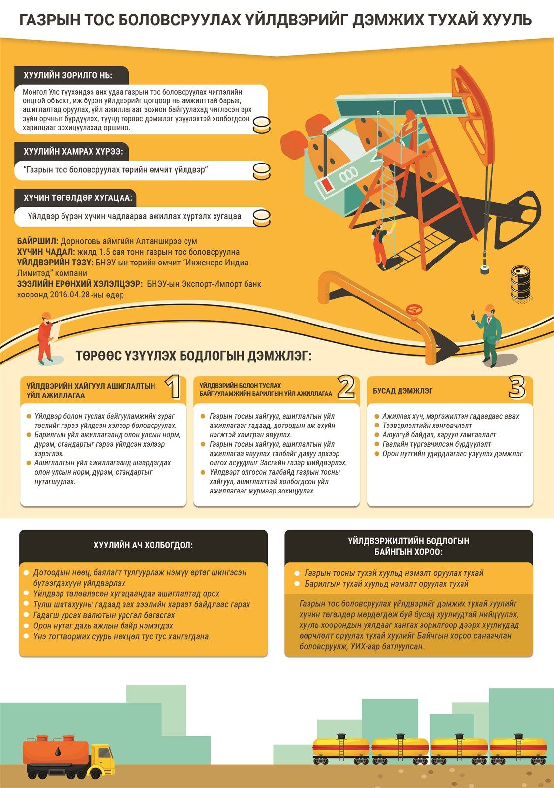 УИХ-ын 2020 оны намрын ээлжит чуулганаар хэлэлцэж баталсан хууль тогтоомжийн талаарх танилцуулга, инфографикийг уншигч та бүхэнд цувралаар хүргэж байгаа билээ. Энэ удаа Газрын тос боловсруулах үйлдвэрийг дэмжих тухай хуулийн танилцуулга, инфографикийн хамт хүргэж байна.