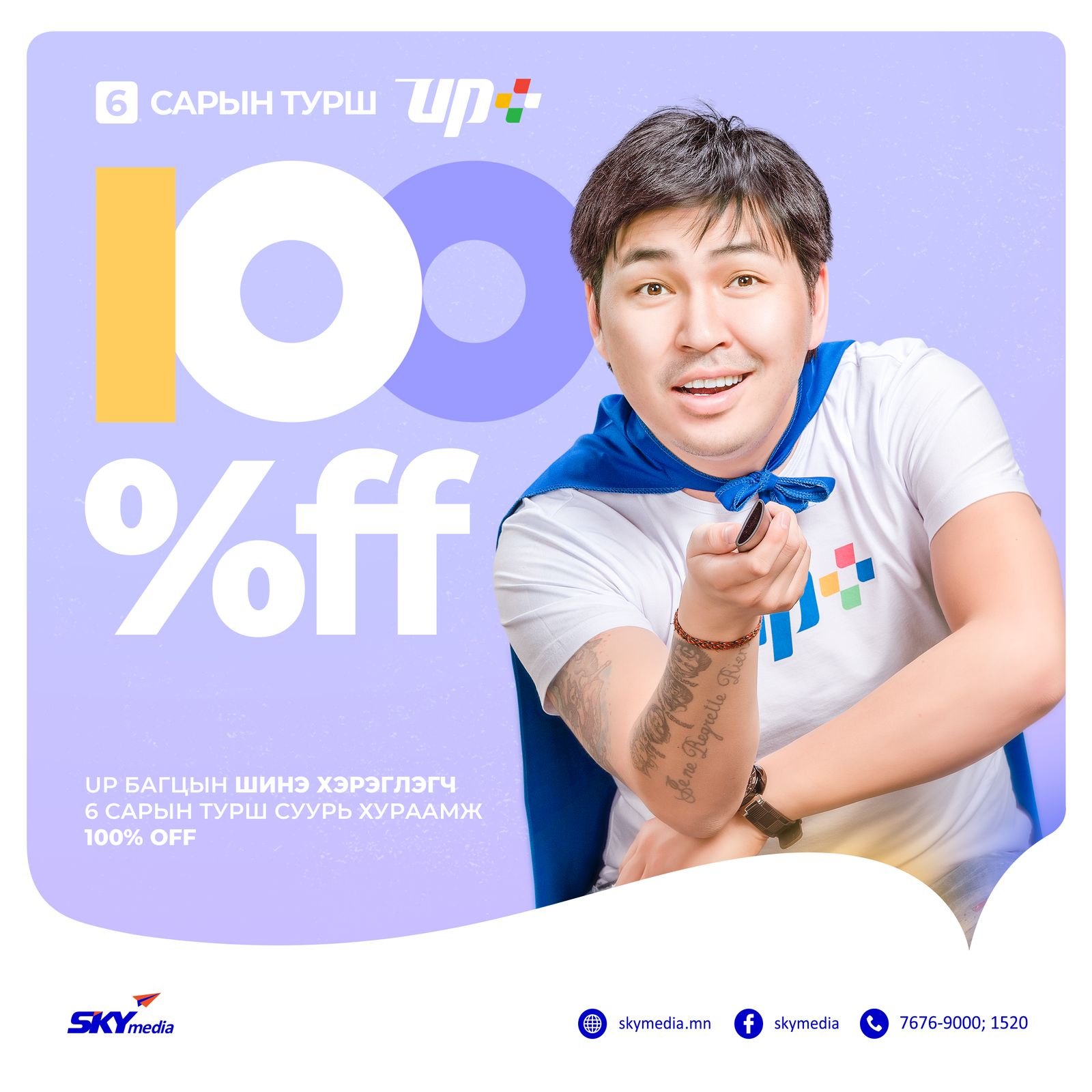 Харин СКАЙмедиа үйлчилгээний бүхнийг багтаасан UP багцын шинэ хэрэглэгч болсноор 6 сарын турш үйлчилгээний суурь хураамжаасаа 100% чөлөөлөгдөх боломжтой.