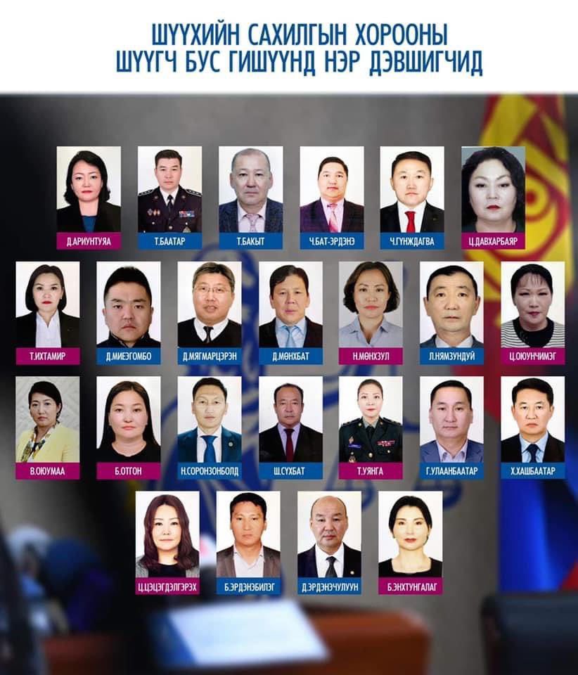 ШЕЗ болон Шүүхийн сахилгын хорооны шүүгч бус гишүүнд нэр дэвшигчид