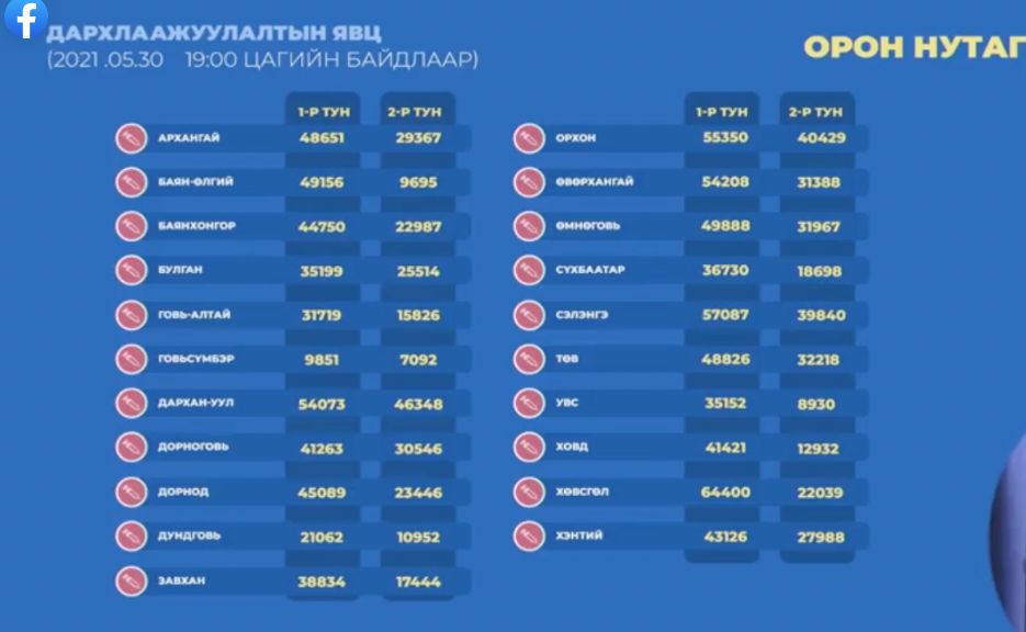 Харин хөдөө орон нутагт 905,835 хүн нэгдүгээр тундаа хамрагдсан бол хоёрдугаар тунг хийлгэсэн хүний тоо 505,646 болжээ.