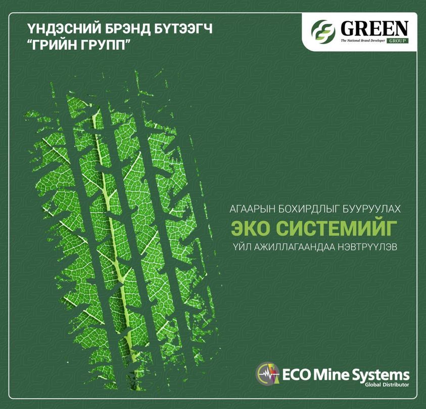 Green group нь нийгмийн хариуцлагын хүрээнд Эко Майн Системс ХХК-ийн шатахууны зарцуулалтыг 30%, автомашины яндангаас ялгарах хорт утааны нэгдлийг (CO, CO2, SO2, NOx, N2, HC, PM10, PM2.5) 70% хүртэл бууруулдаг нь батлагдсан инновацид суурилсан дэвшилтэд технологи болох патенттай ECO төхөөрөмжийг түгээлтийн 100 гаруй авто машинуудад нэвтрүүлээ.