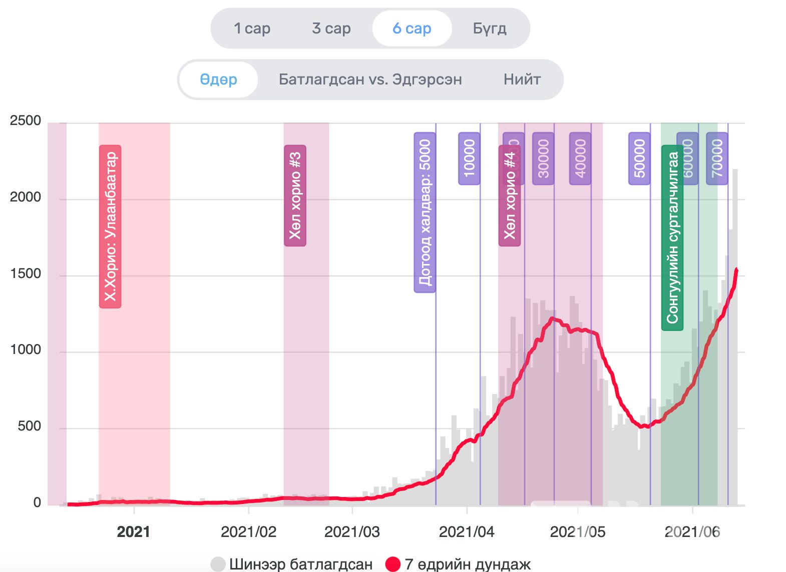 Гэхдээ халдварын давлагаа эргээд гарах хандлагатай байна. Хэрэв энэ давлагаа олон хүнийг хамрах юм бол вакцинжуулалт үр дүнгүй болох, нас баралт нэмэгдэх эрсдэлүүд хүлээж байгаа"-г тавдугаар сарын 27-нд мэдээлж байсан юм.