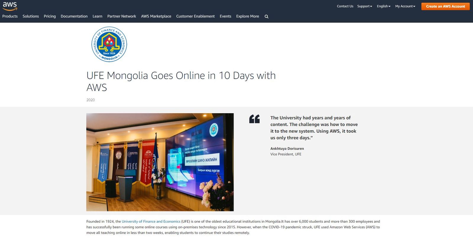 Тэгвэл энэ платформ дээр сүүлийн 3 жилд мэргэшин ажиллаж байгаа FIBO CLOUD компанийн хамт олон 2020 оны 2 сард Монголд хөл хорио тавигдаж СЭЗИС сургуулийн 10 гаруй жил хөгжүүлж ирсэн 6,000 гаруй сурагч, 300 гаруй ажилтан ханддаг сургалтын платформыг ердөө 10 өдрийн дотор сургуулийн мэдээлэл технологийн багтай хамтран шилжүүлж тасралтгүй найдвартай ажиллагааг хангасныг Amazon Web Service компаниас дэлхийн сайн жишиг боллоо хэмээн өөрсдийн албан ёсны вэбсайтдаа байршуулжээ.