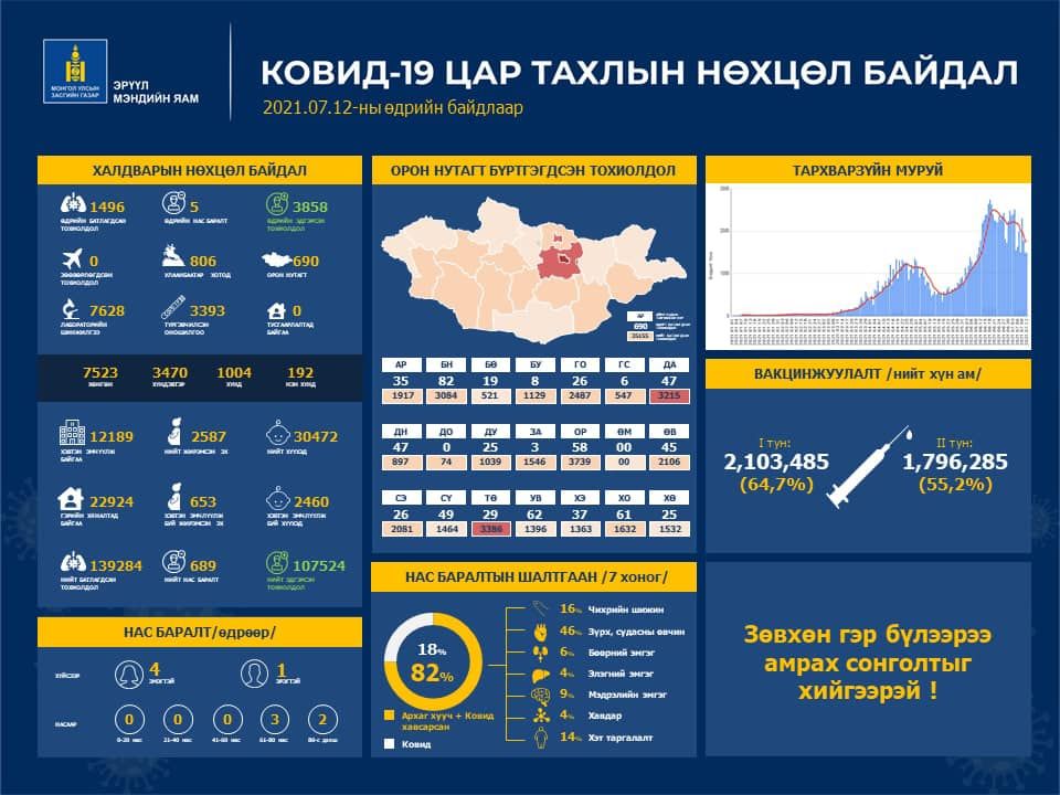 Өнгөрсөн хоногт халдварын улмаас 5 хүн нас барсан бөгөөд нийт нас баралт 689 болов.