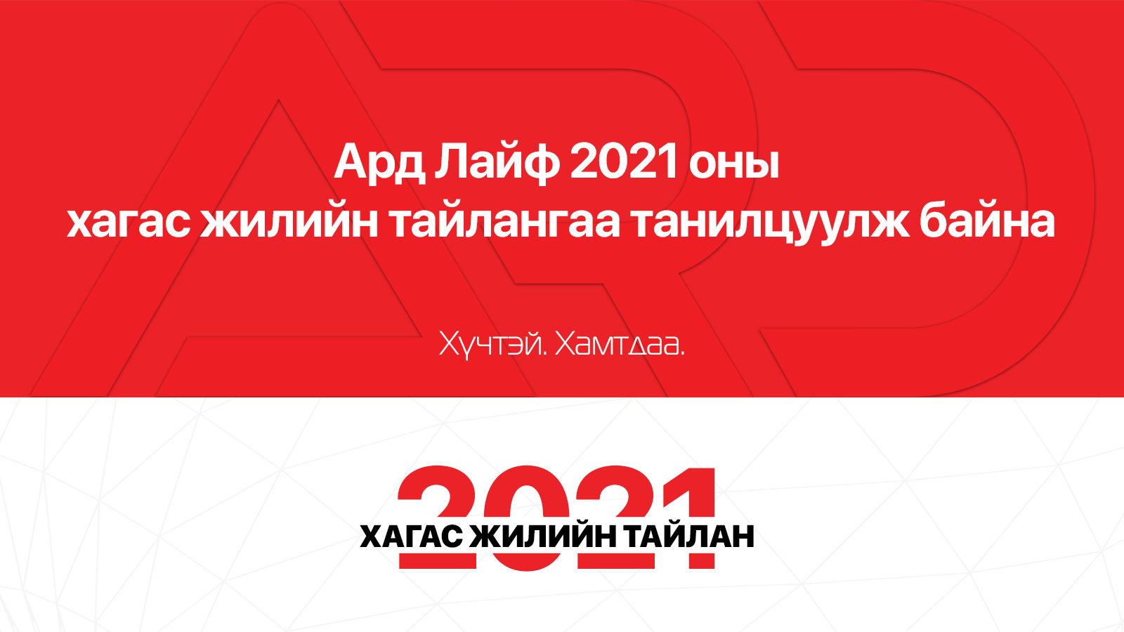Хөрөнгө оруулагчид, харилцагчид, аж ахуйн нэгжүүд, түнш байгууллагууд, хамтран зүтгэгчид та бүхэндээ Ард Лайф ХХК-ийн (Ард Лайф) 2021 оны эхний хагас жилийн ололт амжилт, ажлын үр дүнг тайлагнаж байгаадаа таатай байна.