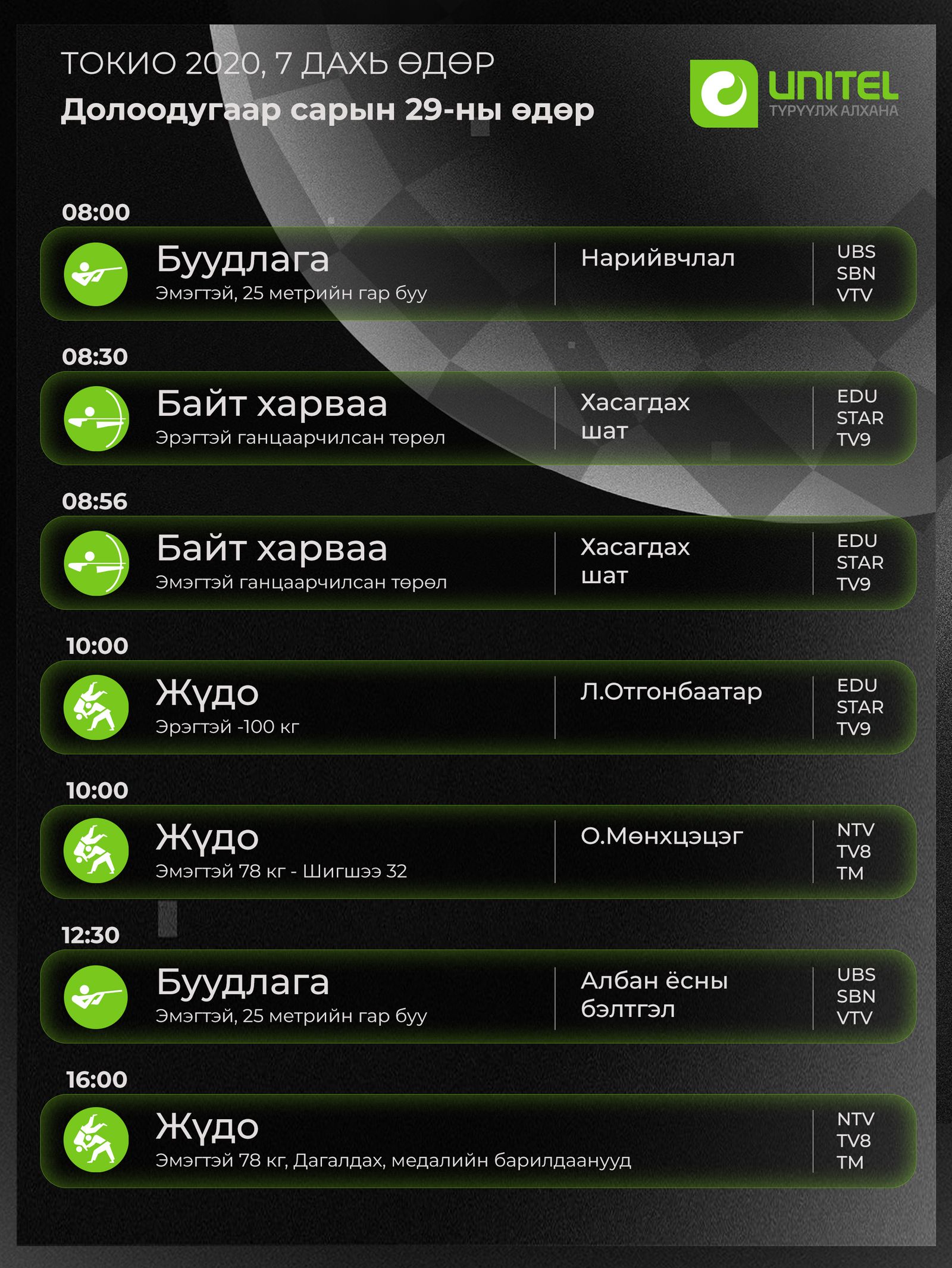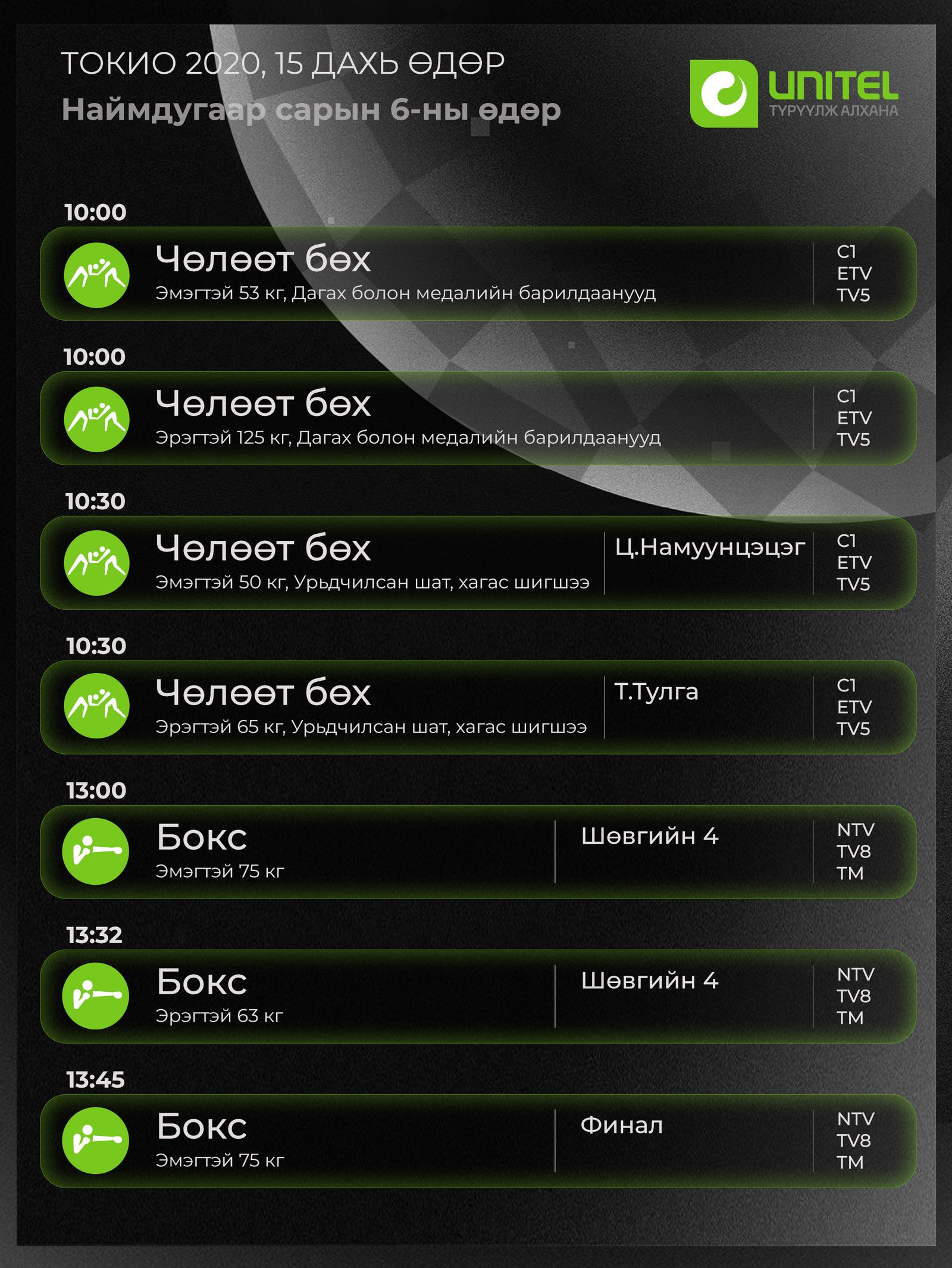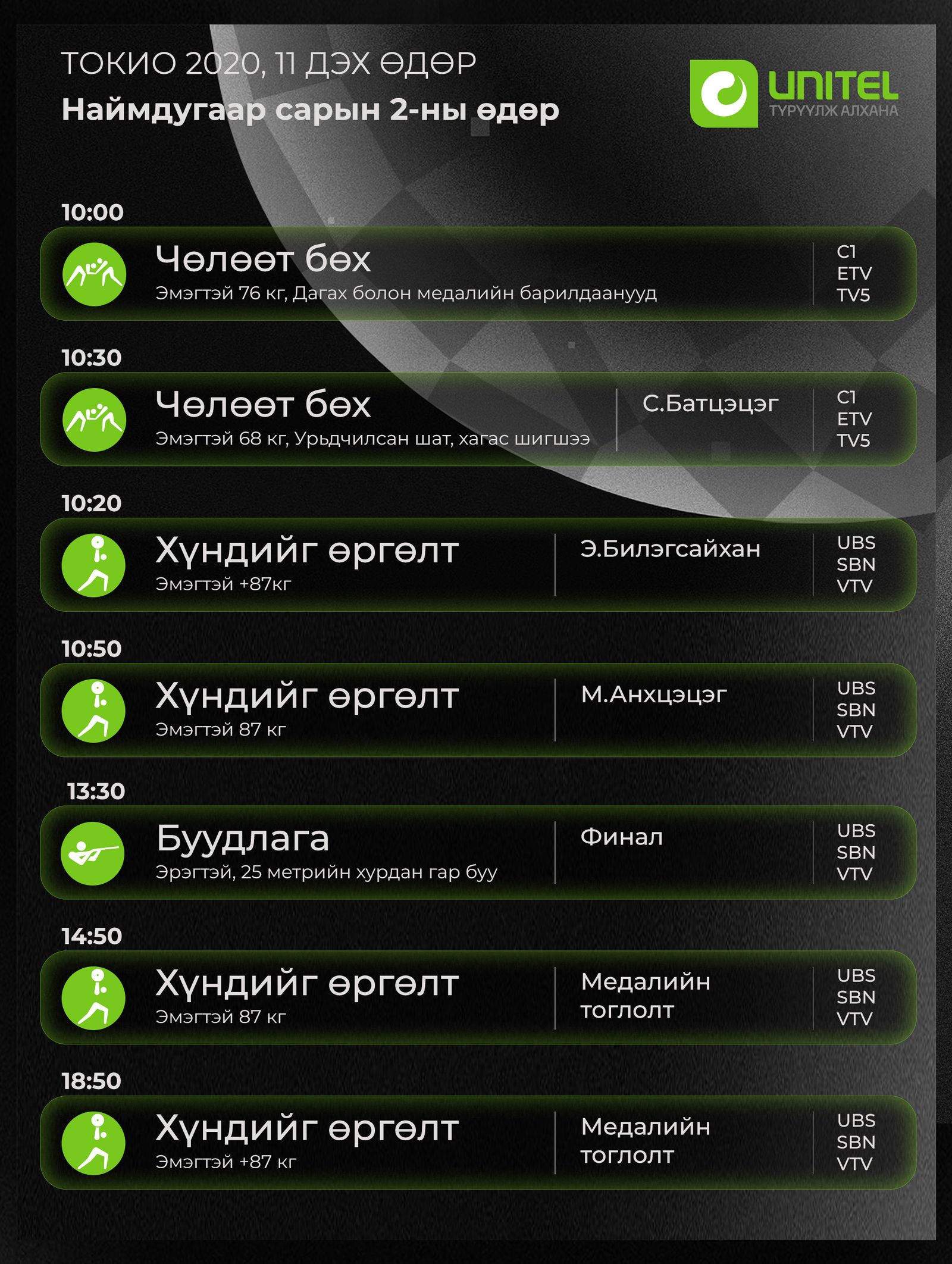 Энэхүү нийтлэлийг танд Юнителийн Дараа төлбөрт үйлчилгээтэй хамтран хүргэж байна. Та “Токио-2020” олимпын сэтгэл догдлом тоглолтуудыг хүссэн газраасаа үзэхийг хүсвэл LookTV Аппликейшнаар үзээрэй. LookTV үнэгүй үзэх эрхтэй, Дараа төлбөрт үйлчилгээний олон багцаас өөрт тохирох багцыг ЭНД дарж сонгоорой.